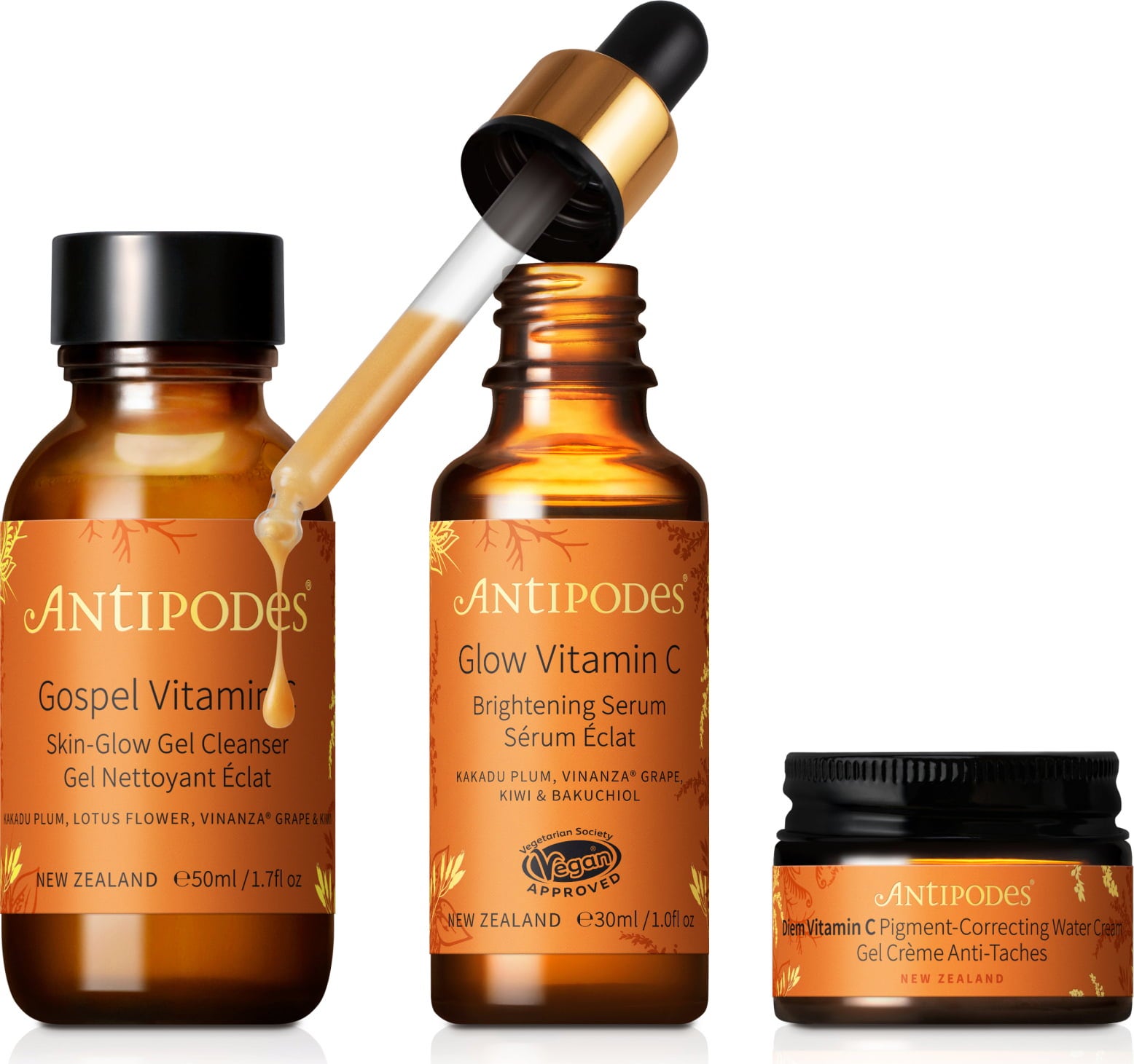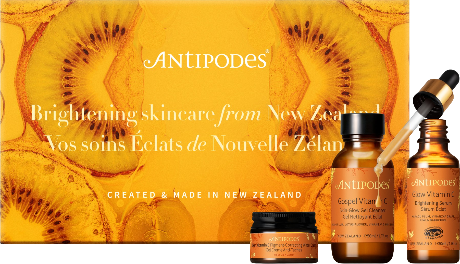Detta högkvalitativa och naturliga hudvårdsset från Antipodes innehåller tre produkter som intensivt vårdar din hud, fräschar upp och ger den ljusare lyster samt stärker dess lyster på ett hållbart sätt. De tre kosmetiska produkterna passar alla hudtyper och är perfekta som belöning till dig själv eller som present till dina nära och kära.
