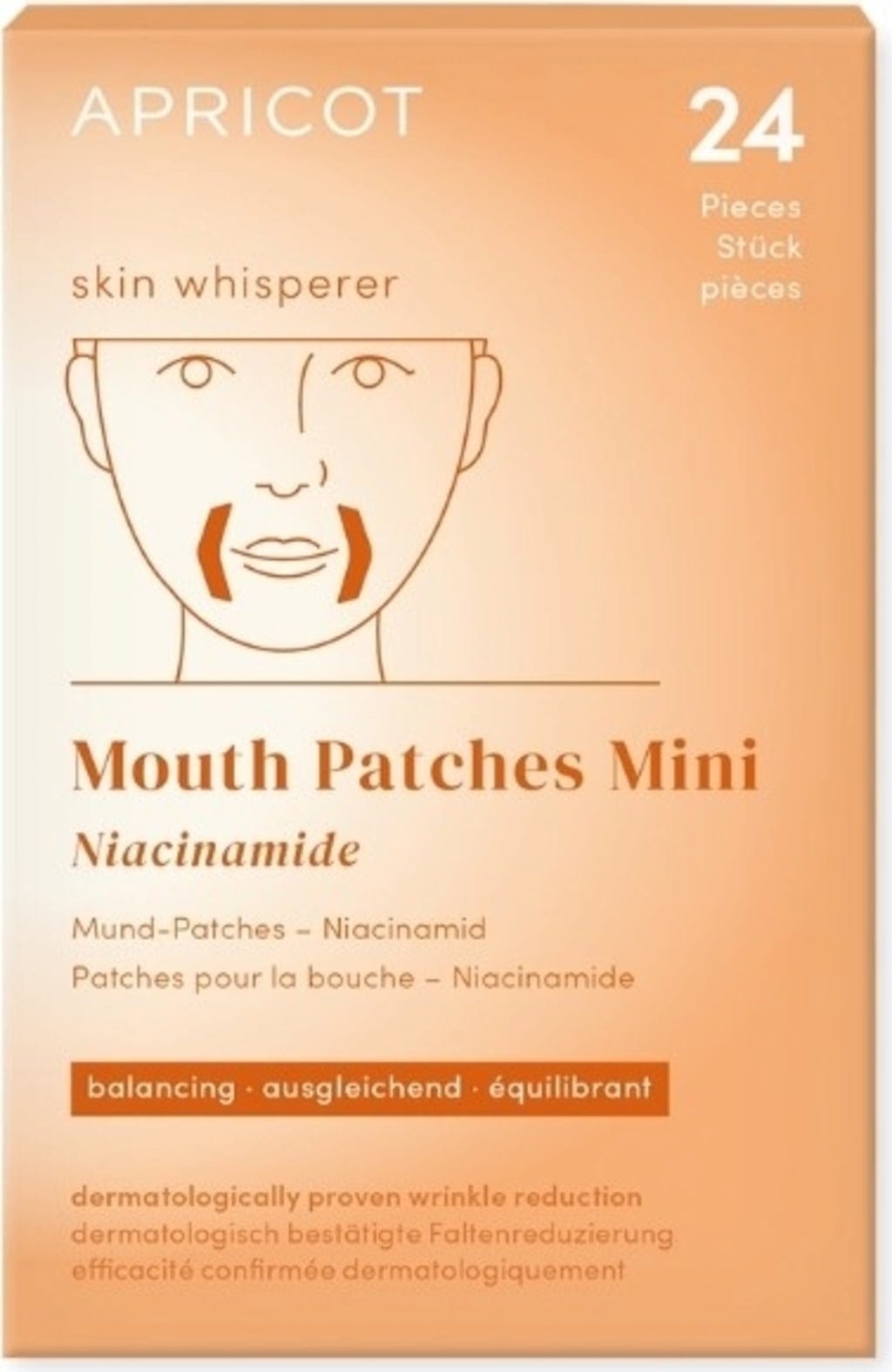 APRICOT munplåster med niacinamid har specialutvecklats för att skonsamt vårda det känsliga området kring läppar och näsa. Berikade med värdefull niacinamid är de särskilt fördelaktiga för fet, storporig och oren hud. De är lätta att applicera på önskade områden och känns bekväma mot huden. De veganska plåstren är avsedda för engångsbruk och kan idealiskt integreras i din hudvårdsrutin. En särskilt praktisk funktion: du kan också bära dem över natten och börja dagen med närd hud.