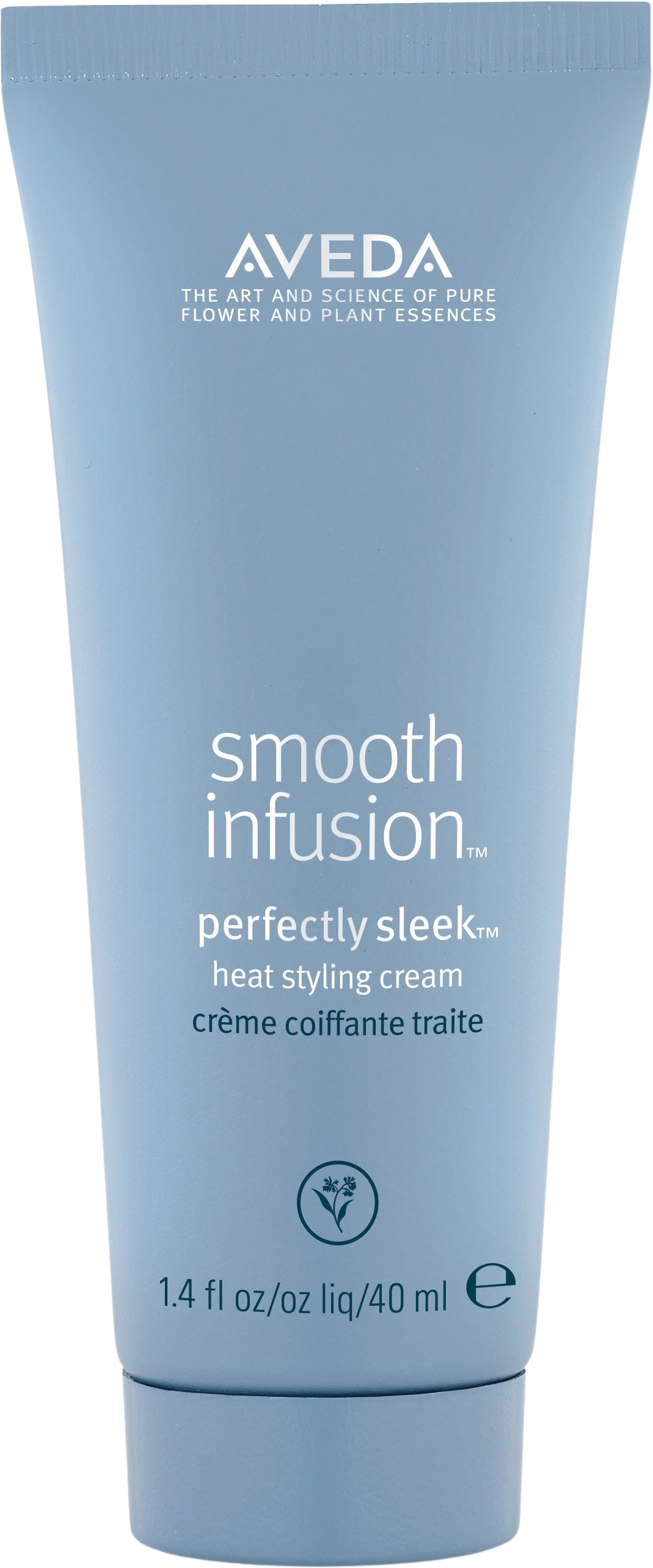 Smooth Infusion™ Perfectly Sleek Heat Styling Cream från Aveda aktiveras av värme och ger naturliga vågor och frissigt hår underbar släthet och mjukhet, samtidigt som den naturliga hårstrukturen bevaras. Den silikonfria, växtbaserade formulan skyddar håret från fuktförlust fram till nästa tvätt och förebygger friss. Håret skyddas även mot kluvna toppar och värmestyling upp till 232°C. Stylingcremen bygger på en växtbaserad polymer-skyddskomplex, värdefulla växtoljor och vårdande murumurubutter.