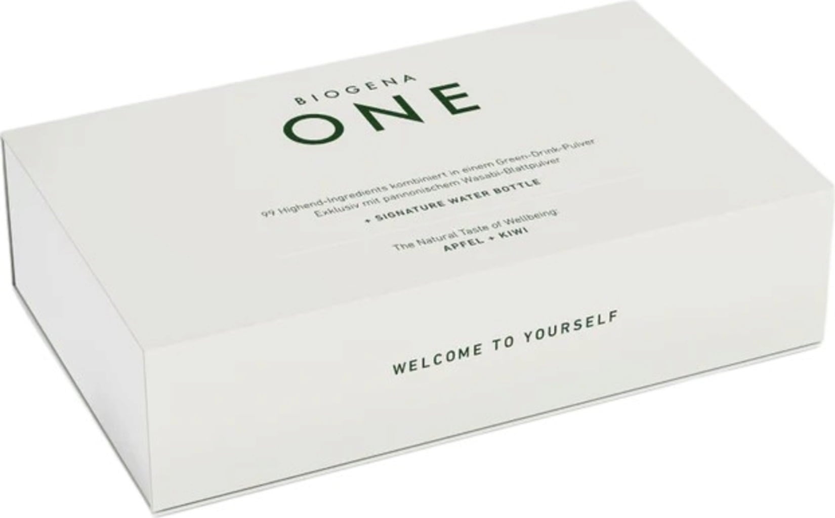 Med en unik blandning av 13 vitaminer, 11 mineraler och spårämnen, 49 exklusiva växtextrakt och 10 kulturer av laktobaciller och bifidobakterier, ger BIOGENA ONE ett naturligt stöd till din kropp. Den fräscha smaken av äpple, kiwi, gurka och en touch av wasabiblad gör varje daglig dos till en njutning.