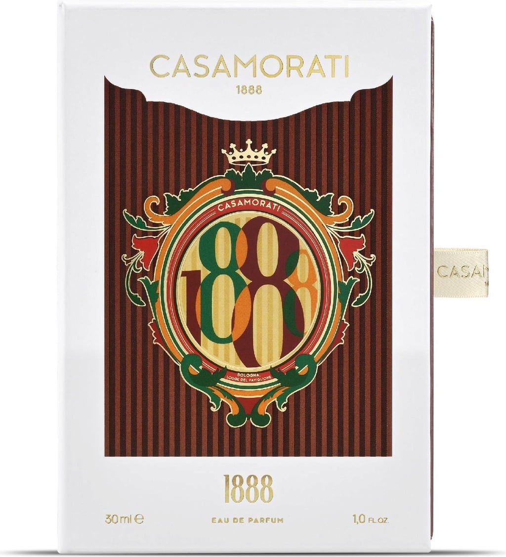 Casamoratis Eau de Parfum 1888 är en verkligt klassisk doft som är oöverträffad. Med sin kryddiga, orientaliska karaktär är denna parfym en påtaglig souvenir från en svunnen tid och har en typisk italiensk karisma. Invigningen med färsk grönpeppar och dyrbart iranskt saffran, kombinerat med det exotiska hjärtat av indonesisk ylang-ylang och marockansk neroli förför och skapar nyfikenhet. Den klassiska basen av Mysore sandelträ, patchouli och bärnsten gör att du vill ha mer.