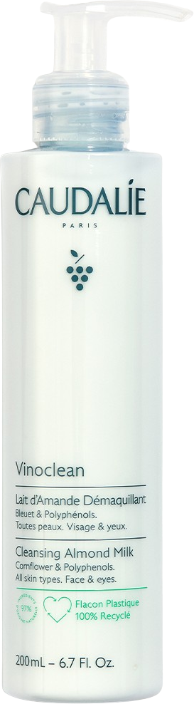 Den Vinoclean Cleansing Almond Milk från Caudalie skämmer bort din hud varje dag, morgon som kväll, och passar för alla hudtyper, även känslig. Den tar enkelt bort smink från ansikte och ögon, utan att irritera och ger samtidigt en djupgående men skonsam rengöring. Den rika och närande formulan består av 97 % ingredienser av naturligt ursprung och är fullpackad med vårdande kraftaktiva ämnen, bland annat jojobaolja och mild mandelolja, som är rika på omega-6- och omega-9-fettsyror, och stärker din hudbarriär. Tillsammans med ekologiskt sheasmör och kornblomsextrakt blir din hud också intensivt närd och skyddad. Dessutom bevarar rengöringsmjölken din hud aktivt från uttorkning och lämnar den mjuk, len och välvårdad.