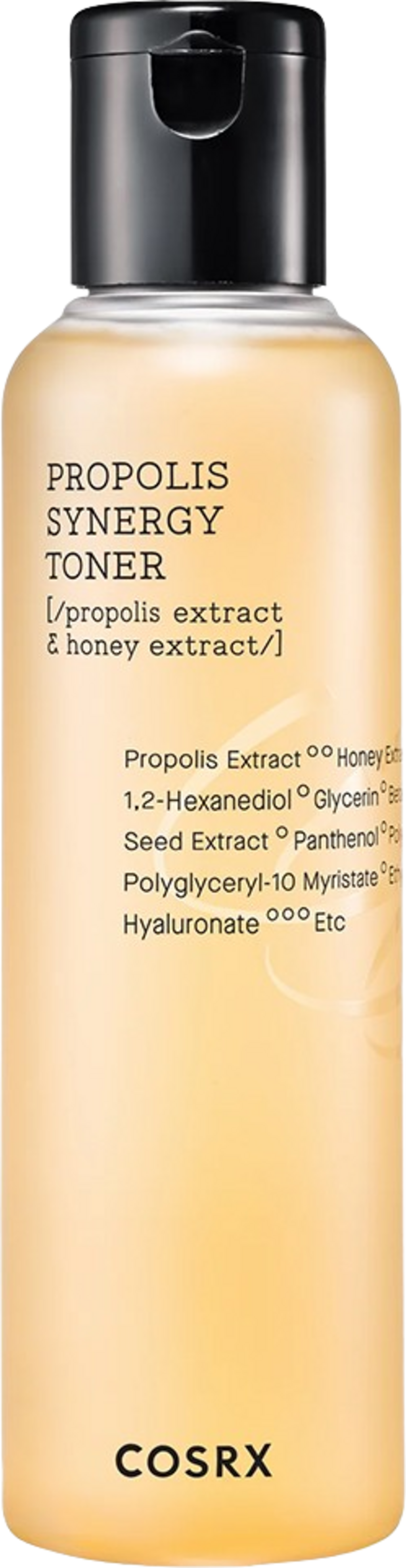 Propolis Synergy Toner från Cosrx ger huden en fräsch och strålande finish. Med 72,6 % propolis från svarta bin och 10 % honungsextrakt lugnar den huden, minskar irritationer och förbättrar hudens struktur. Betain och glycerin återfuktar på djupet och hjälper huden att behålla fukten, vilket stärker hudbarriären och förbättrar elasticiteten.