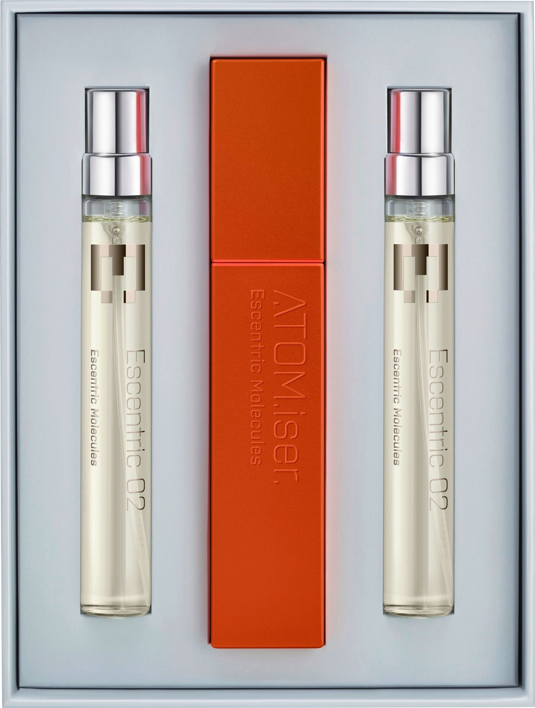 Escentric 02 ATOM.iser Set från Escentric Molecules är ett lyxigt set som består av tre Escentric 02 eau de toilette i reseformat och ett smidigt doftetui, utvecklat för hållbarhet och en exklusiv reseupplevelse som kompletterar din livsstil på språng.