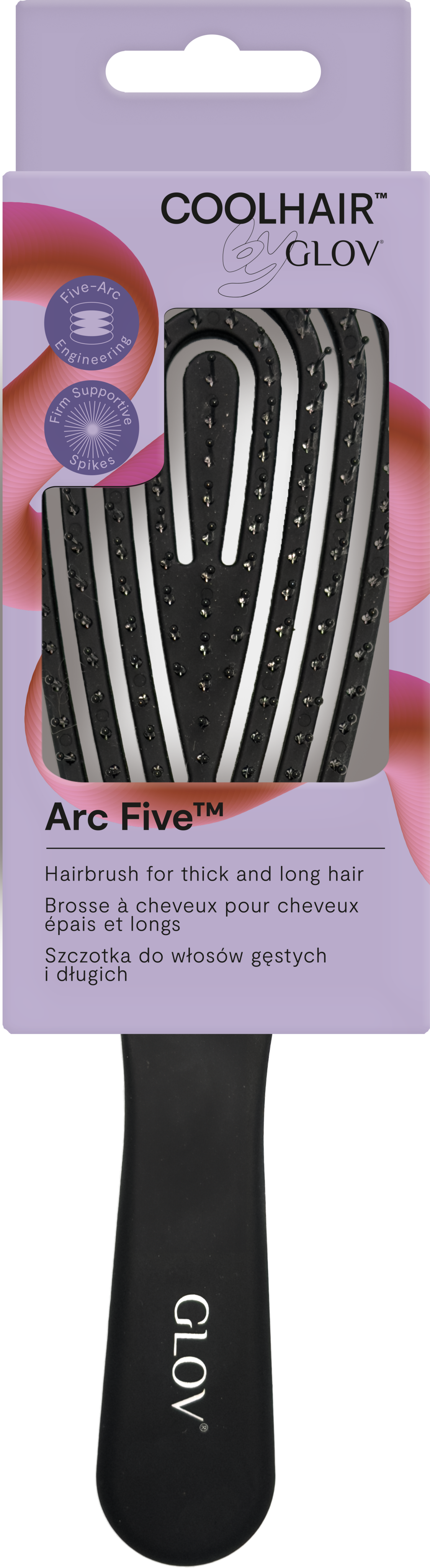 Den innovativa Arc Five™ Brush är utvecklad för att glida genom håret med precision och lätthet. Den unika Five-Arc-strukturen bildar en droppform som ökar stabiliteten och gör att borsten rör sig smidigt vid varje drag. Tack vare sina högkvalitativa, stadigt fästa piggar arbetar den sig genom tjockt hår och stöttar det underifrån för att minska risken för att dra, slita eller orsaka hårbrott. Borsten passar bra för långt, tjockt eller lätt trassligt hår och ger en balanserad borstupplevelse som känns både kraftfull och skonsam. Den ergonomiska formen ger ett säkert och bekvämt grepp samt full kontroll - oavsett om du reder ut, slätar ut eller stylar till vardags.