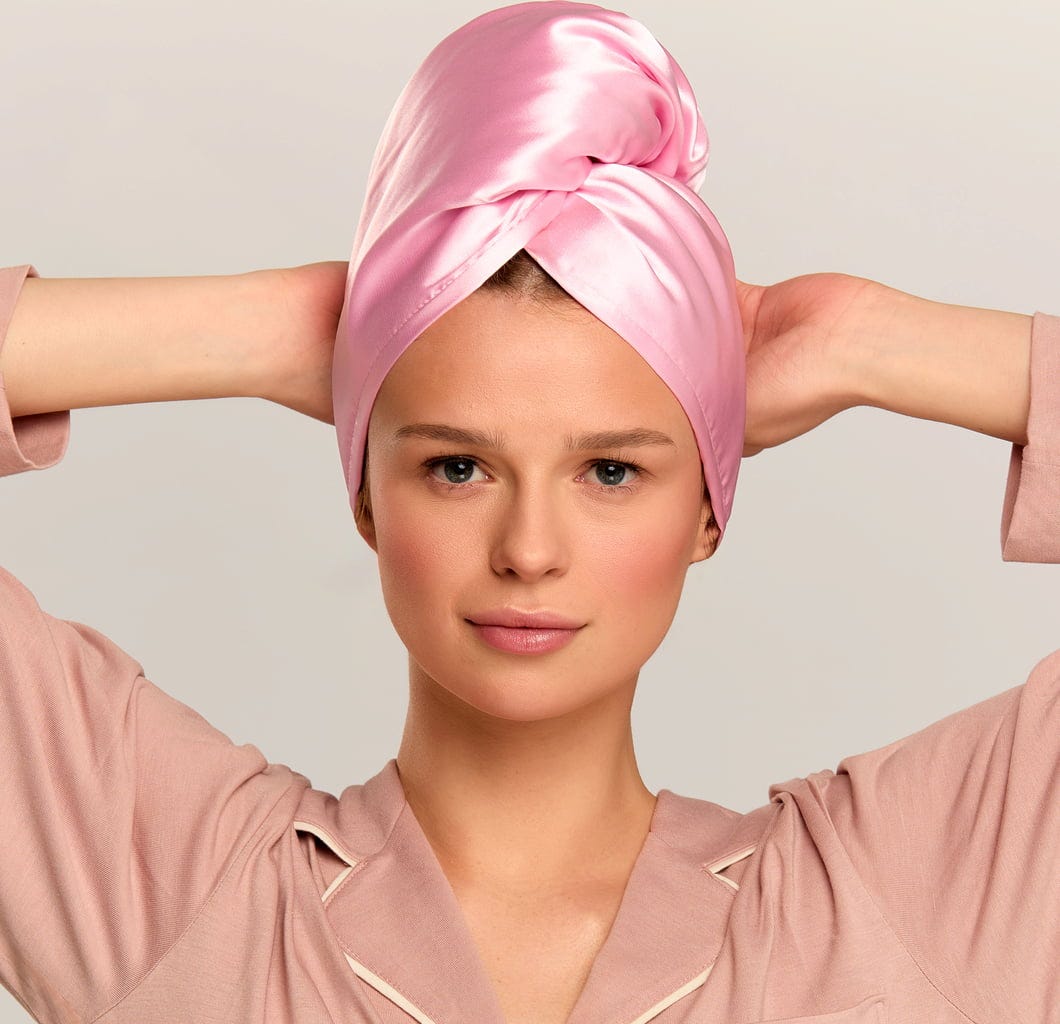 Den vändbara turbanen gjord av satin och en mycket absorberande fiber är din allierade när det kommer till praktisk och komfort för dig och ditt hår. Den är designad för att bäras på båda sidor och för att stödja dig när du torkar håret. Lyxig satinsida är designad för att se bra ut på utsidan medan GLOV-fibern absorberar överflödig fukt från håret men kan också bäras inuti för att skydda torrt hår från att gå sönder, frizz eller trasslar