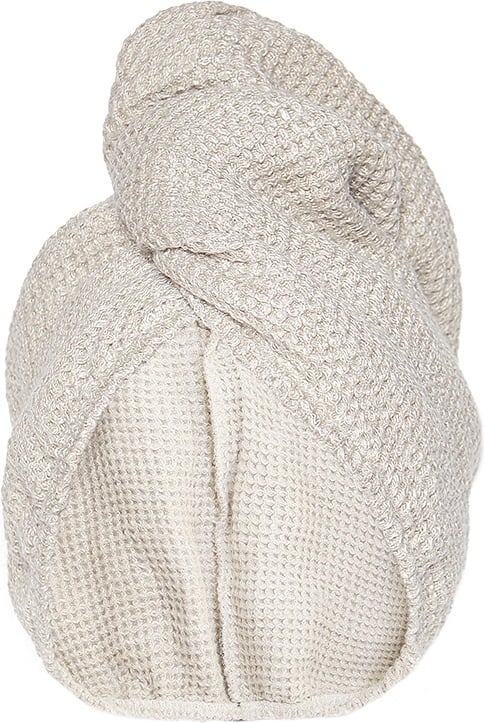 Denna hårturban är lätt och gjorde av linnetyg. Den hjälper till att torka håret snabbt utan skadlig värme. Den fantastiska designen med ögla och knapp ger en perfekt och bekväm passform.