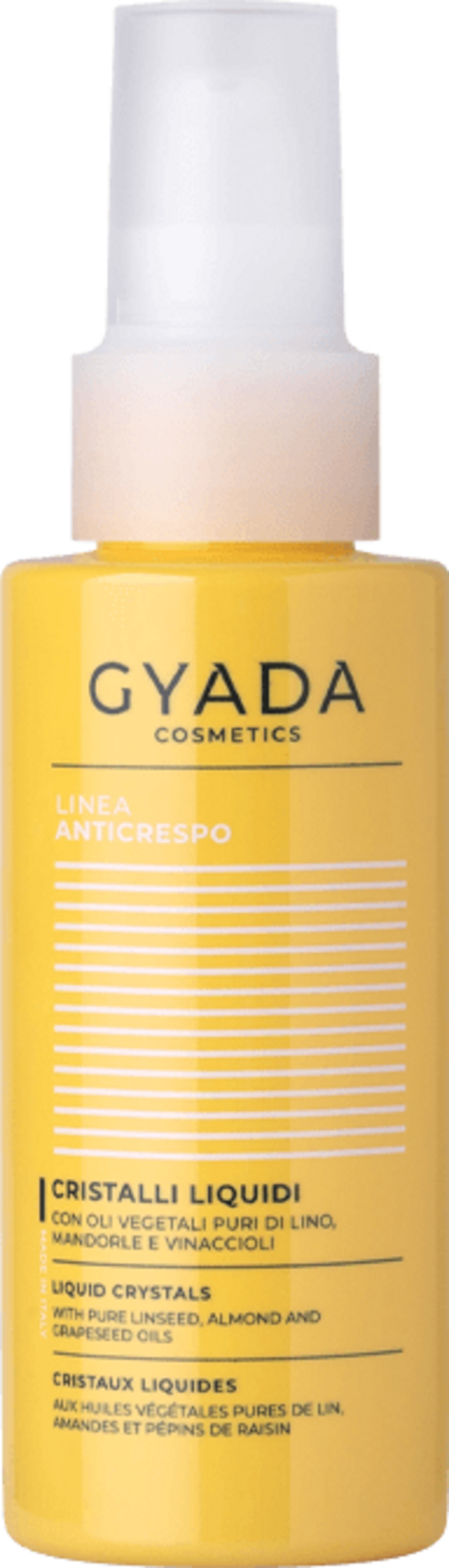 De flytande kristallerna i GYADA Cosmetics hjälper till att förbättra hårets glans och att stänga delade toppar. Den alkoholfria, koncentrerade blandningen av rena vegetabiliska oljor (druvfrön, mandel och lin) är idealisk för torrt, sprött och tråkigt hår. Vårdverket säkerställer silke, skiner och skyddar mot skadliga miljöpåverkan samt hårtorksvärme.