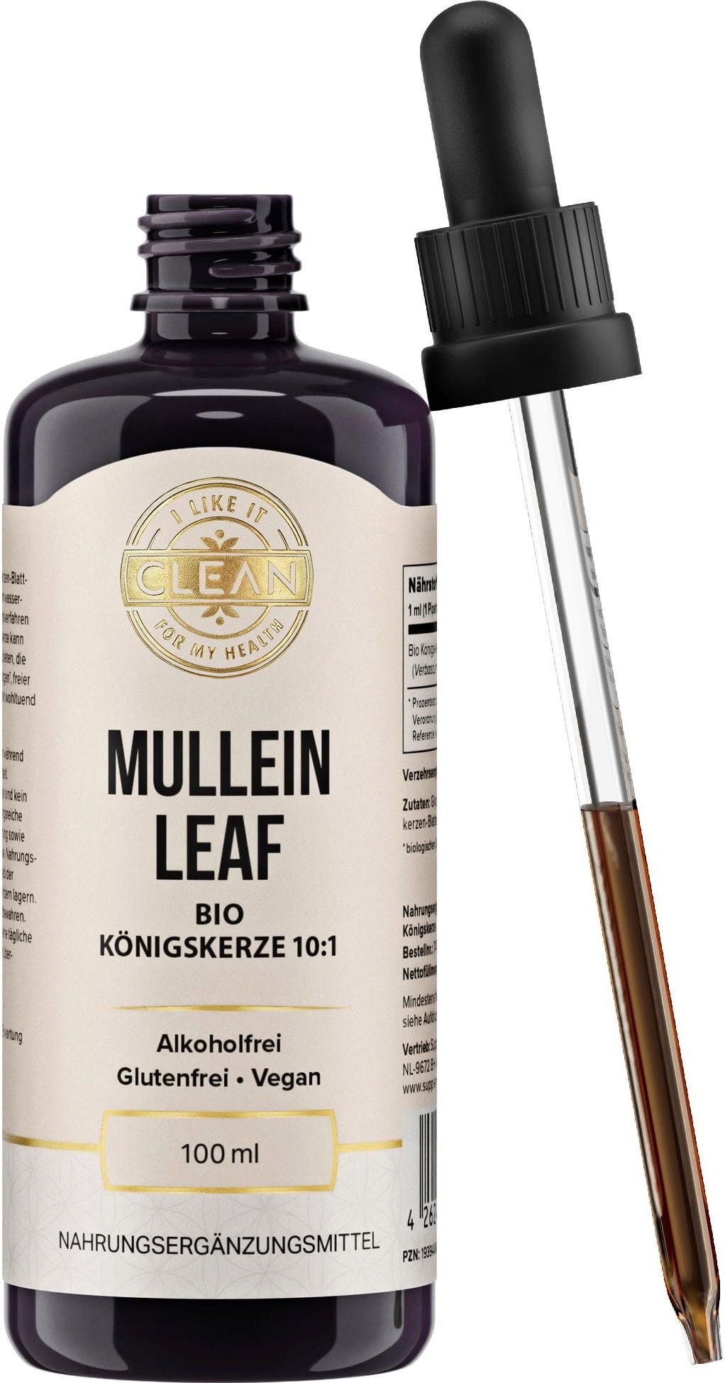 Upplev mullein-extraktet 10:1 från i like it clean - ett alkoholfritt, vattenbaserat flytande extrakt från bladen på den småblommiga mulleinen. Detta mycket rena kosttillskott framställs utan onödiga tillsatser och kombineras uteslutande med ekologiskt glycerin från linfrö.