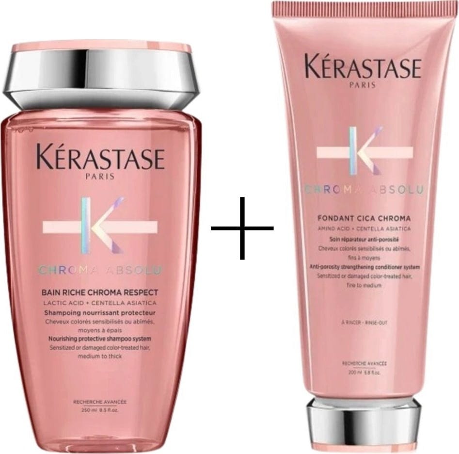 Bain Riche Chroma Respect från Kérastase är ett vårdande och sulfatfritt schampo som rengör färgat och skadat hår varsamt, samtidigt som det skyddar och reparerar. Genom att försluta porösa hårfibrer hjälper det färgen att hålla längre, samtidigt som håret blir mjukare och glansigare.