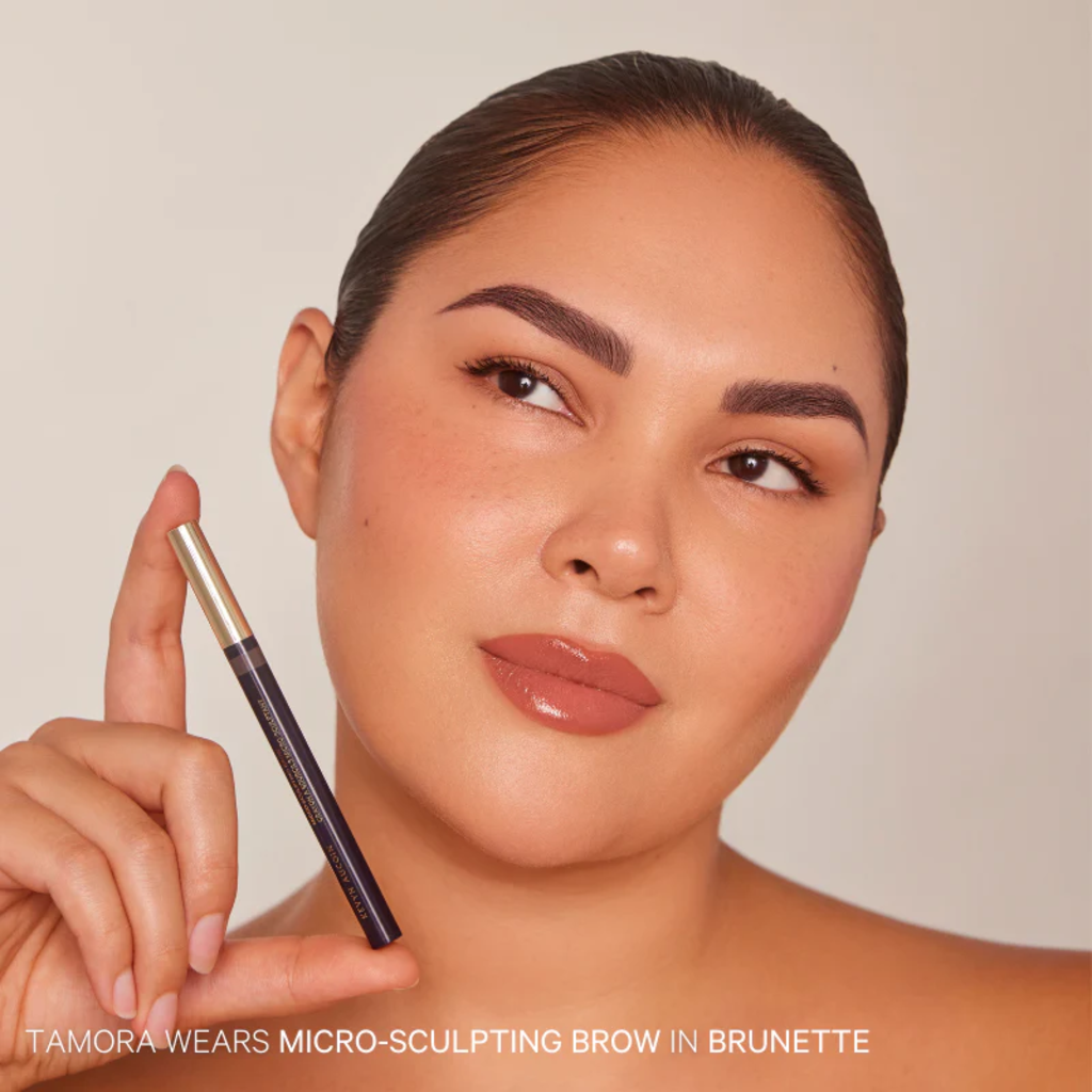 Micro-Sculpting Brow från Kevyn Aucoin är en vattenfast, ultrafin brynpenna med flera spetsar – idealisk för att skapa realistiska strån och naturligt fylliga bryn. Oavsett om du vill ha micro-, nano-, fjäder- eller enfärgade bryn skapar den här pennan vackra former med mikrosträck. Den unika, gaffelliknande spetsen imiterar hårstrån och gör det enkelt att fylla i och forma brynen med precision och definition. Den innovativa flerzinkade spetsen applicerar färg i tunna, hår-liknande drag och kammar samtidigt brynen för ett felfritt resultat.