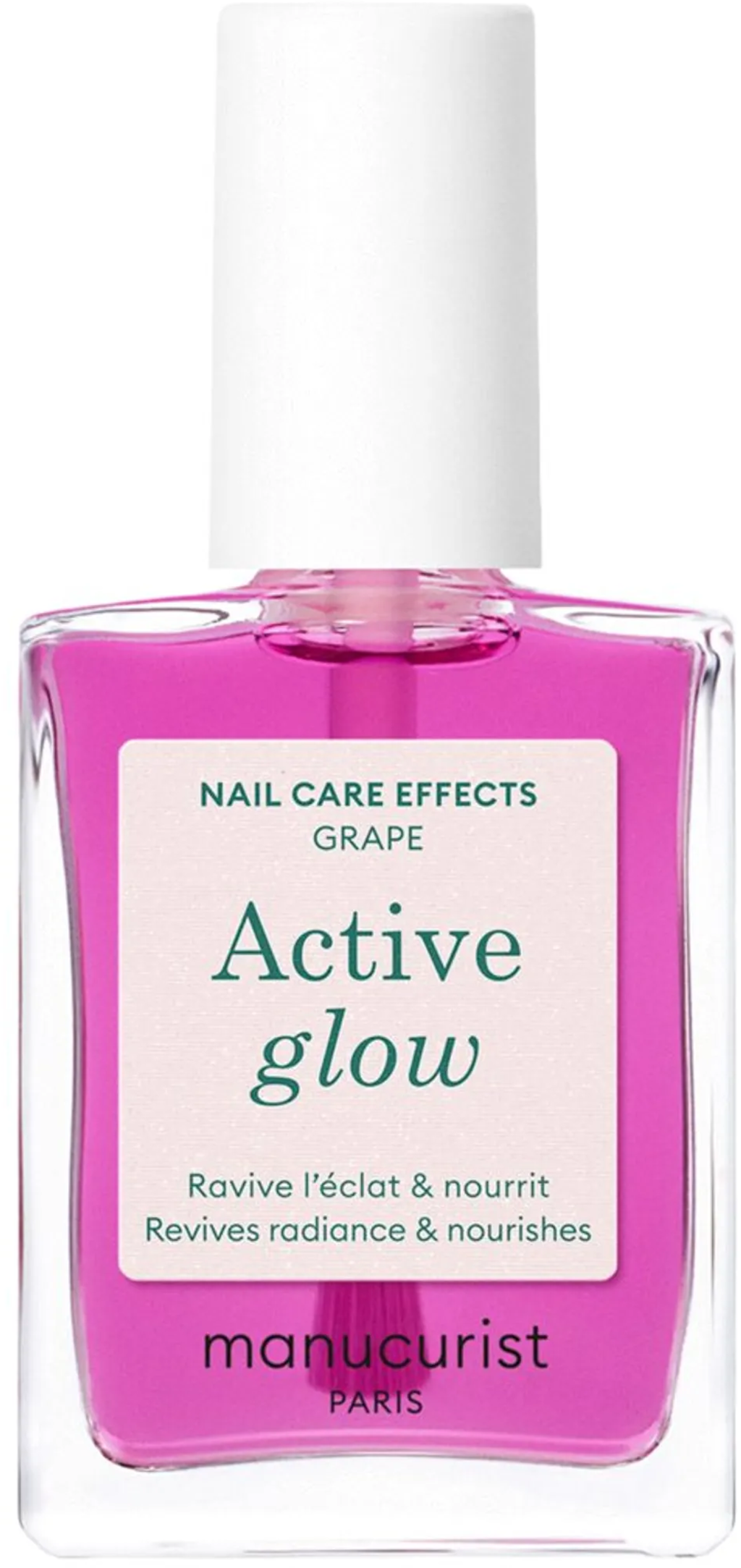 Active Glow från Manucurist kombinerar effektiv nagelvård med glänsande färg. Det biobaserade lacket innehåller ett naturligt ingredienskomplex med Lactobacillus ferment, AHA och blåbärsextrakt som ger en omedelbar rosig lyster och spegelblank glans. Samtidigt regenereras och stärks naglarna redan vid första appliceringen. Formulan innehåller även sötmandelolja som är känd för sina återfuktande och närande egenskaper. Nagellacket hjälper även svaga och sköra naglar att bli starkare och förbättrar deras struktur.
