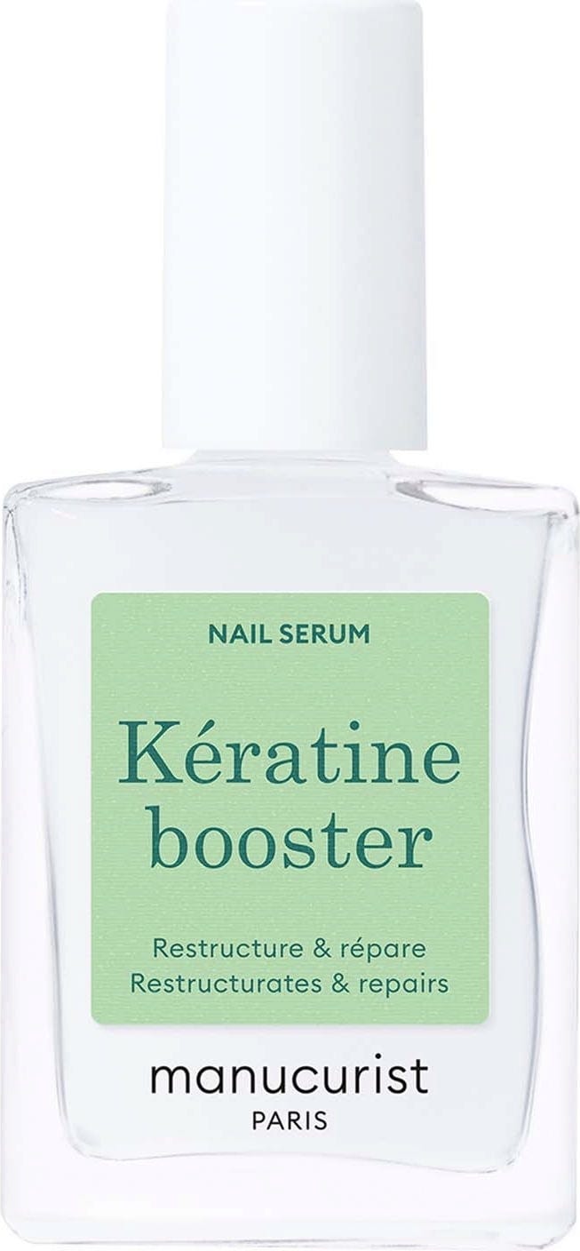 Keratin Booster från Manucurist hjälper till att vårda mjuka eller skadade naglar och fungerar som en intensiv regenererande behandling med omedelbar effekt. Den högkoncentrerade formulan absorberas snabbt tack vare sin flytande textur och verkar direkt i nagelplattan. Med 10 % vegetabiliskt keratin och biotin får sköra naglar intensiv näring och stärks. AHA och glukonolakton peelar nagelytan skonsamt, medan kisel stärker strukturen och vitamin C skyddar mot yttre påverkan. Resultatet är synbart starkare och mer motståndskraftiga naglar redo för alla looks. Serumet är en optimal behandling för att återställa och revitalisera dina naturliga naglar.