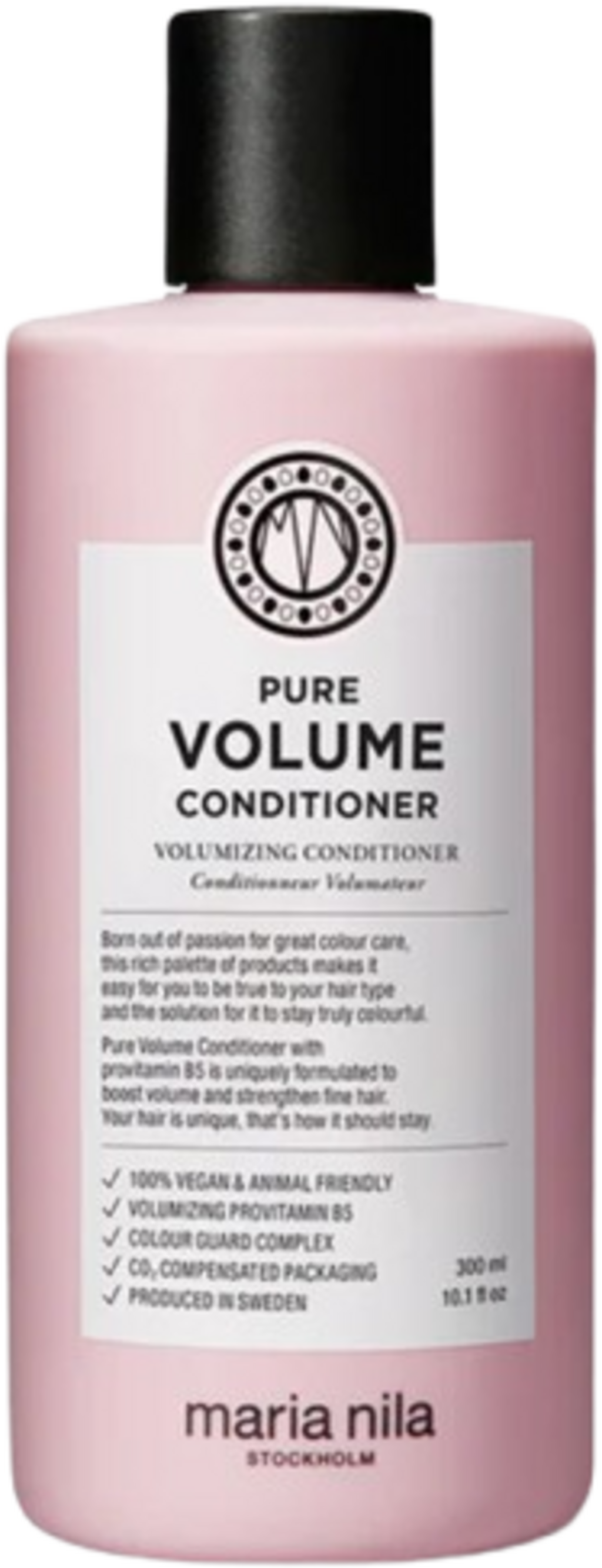 Pure Volume Conditioner från Maria Nila är ett utredande balsam som är särskilt framtaget för fint och livlöst hår – för att ge dig precis motsatsen: smidighet, fukt och imponerande volym utan att tynga ner. Hemligheten är provitamin B5 som tillför fyllighet och styrka med ett långvarigt resultat. Med en kombination av veteprotein och moringaolja vårdas och stärks håret på djupet. Och tack vare det innovativa Colour Guard Complex skyddas din hårfärg mot UV-strålning, vilket gör att den behåller sin lyster längre.