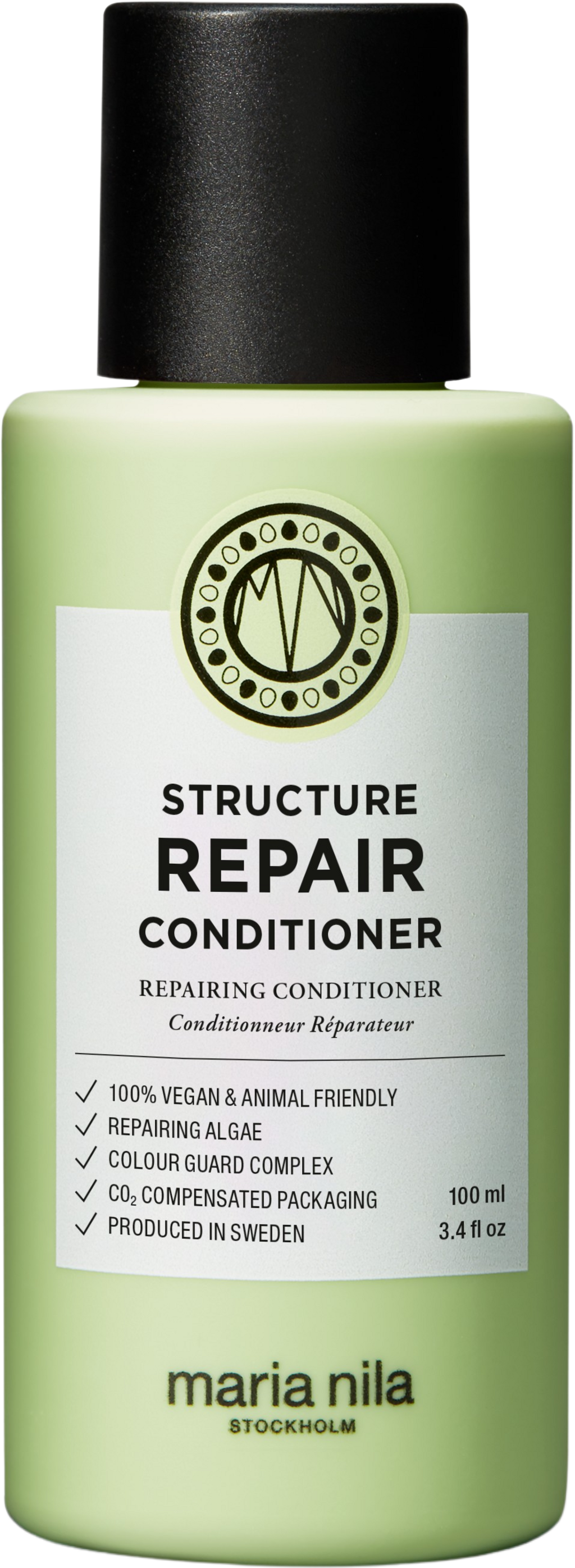 Structure Repair Conditioner från Maria Nila är ett utredande balsam för skadat, torrt och kemiskt behandlat hår som återfuktar, gör håret smidigt och motverkar statisk elektricitet. Den reparerande algextrakten stärker håret, tillför glans och smidighet. Dessutom skyddar balsamet håret mot UV-strålning, vilket hjälper till att bevara färgen längre.