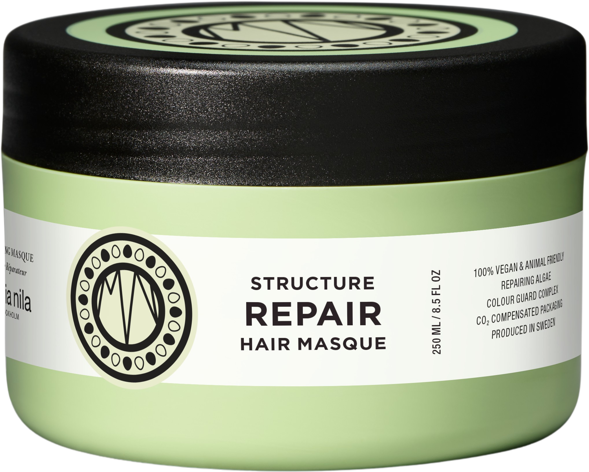 Structure Repair Masque från Maria Nila är framtagen för skadat, torrt och kemiskt behandlat hår. Den ger intensiv fukt, återställer hårets naturliga styrka och motverkar statisk elektricitet. Berikad med stärkande algextrakt som hjälper till att reparera hårets struktur, ger masken ett mjukare och mer välvårdat resultat. Colour Guard Complex skyddar dessutom håret från UV-strålning och hjälper till att bevara färgens intensitet längre.
