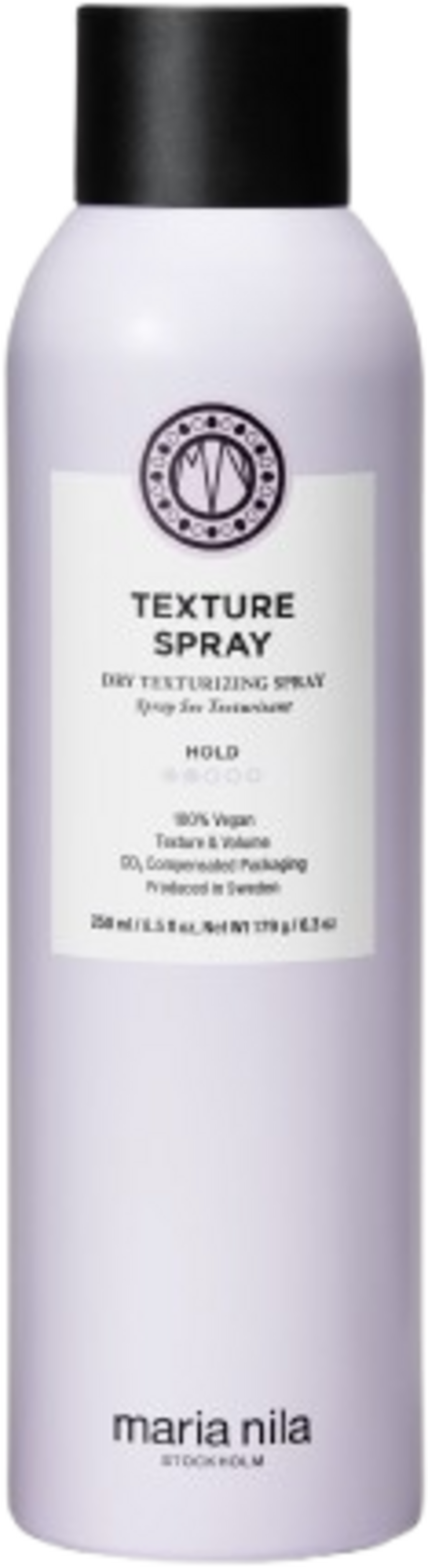 Texture Spray från Maria Nila ger omedelbar volym och naturlig textur – perfekt för att skapa en avslappnad look med rörelse. Den vårdande formulan med squalan och solroskärneextrakt hjälper till att bevara fukten i både hår och hårbotten. Med medelstark stadga kan du enkelt styla och forma håret, utan att förlora dess naturliga känsla.