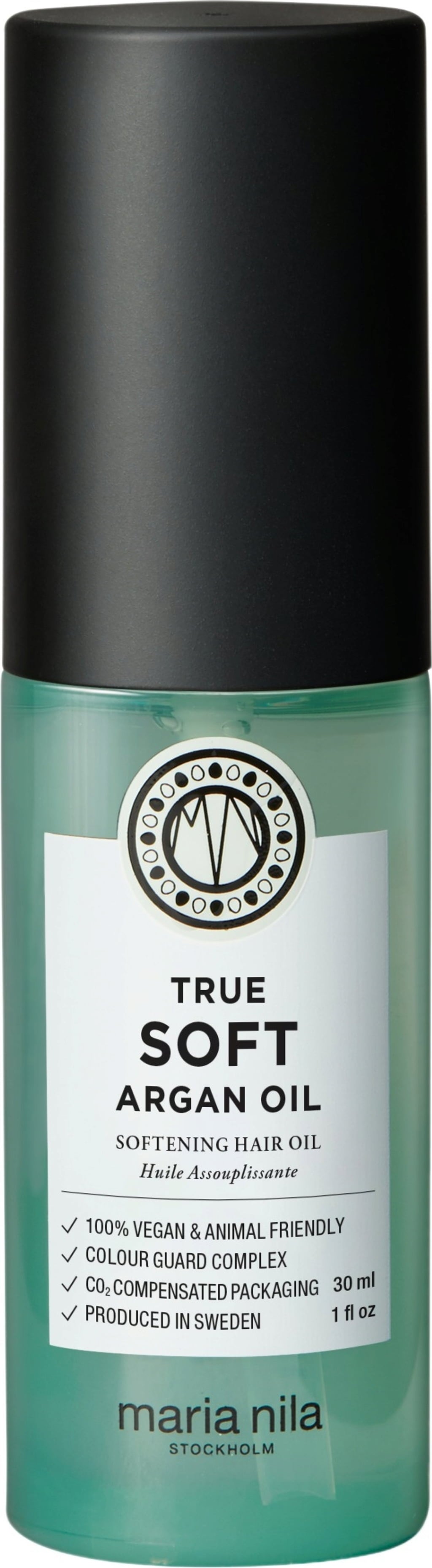 Drömmer du om hår som känns mjukt och ser levande ut – helt utan friss? Då är True Soft Argan Oil från Maria Nila precis vad du behöver. Denna snabbabsorberande olja återfuktar och vårdar håret utan att tynga ner. Håret blir genast silkeslent och friss dämpas effektivt. Samtidigt stärker oljan håret inifrån och tillför näring, samtidigt som ett särskilt Colour Guard Complex skyddar din färg från UV-strålar – för en strålande färg som håller längre.