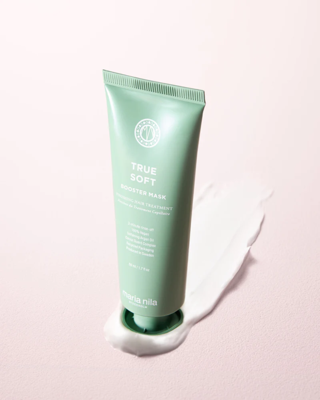 True Soft Booster Masque från Maria Nila har en innovativ formula med återfuktande arganolja och ett skyddande Colour Guard Complex – hemligheten bakom ett glänsande, friskt hår! På bara 3 minuter får ditt hår intensiv glans, mjukhet och styrka. Det bästa? Masken ersätter både balsam och hårinpackning i ett enda steg, vilket sparar tid och ger maximalt resultat tack vare 10 gånger fler aktiva ingredienser.