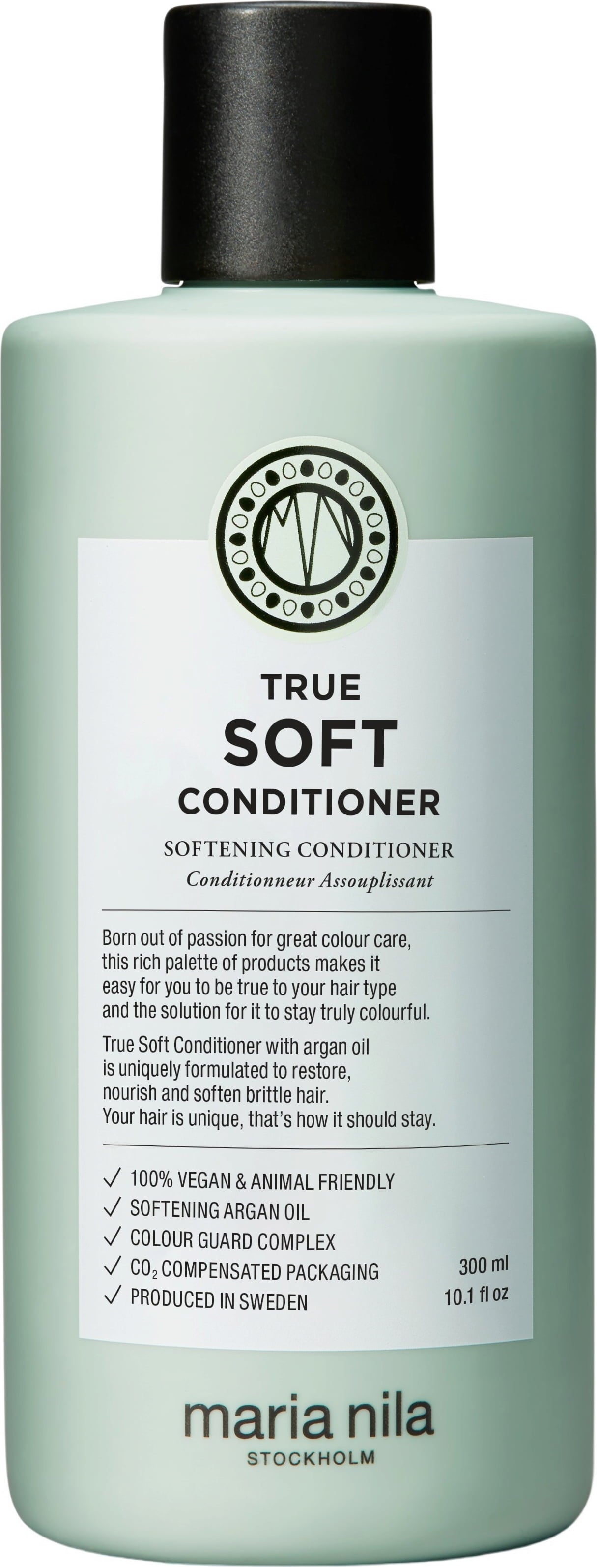 True Soft Conditioner från Maria Nila är den perfekta lösningen för dig som kämpar med trassligt hår och svår styling. Detta utredande balsam är särskilt anpassat för torra hårtyper och ger intensiv vård som återfuktar, stärker och gör håret smidigt. Balsamet fungerar som en fuktboost och hjälper till att minska friss samtidigt som det gör håret lättare att kamma. Arganolja reducerar statisk elektricitet och ger en naturlig, hälsosam glans. Dessutom skyddar Colour Guard Complex din hårfärg mot UV-strålar – för en färg som håller sig levande längre.
