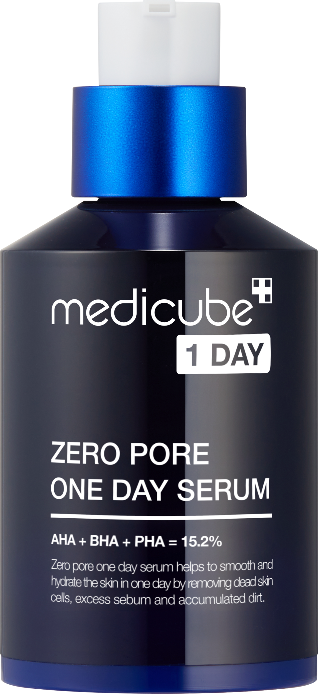 Zero Pore One-day Serum från Medicube hjälper till att minimera porer, jämna ut hudytan och tillföra intensiv fukt. Formulan innehåller AHA, BHA och PHA som skonsamt exfolierar bort döda hudceller, talg och smuts – för en klarare, renare hud. Extrakt från förgätmigej och Jeju-sichelgräs samt allantoin lugnar huden, främjar återhämtning och ger vitalitet. Bonus: en uppljusande effekt för ett strålande intryck.