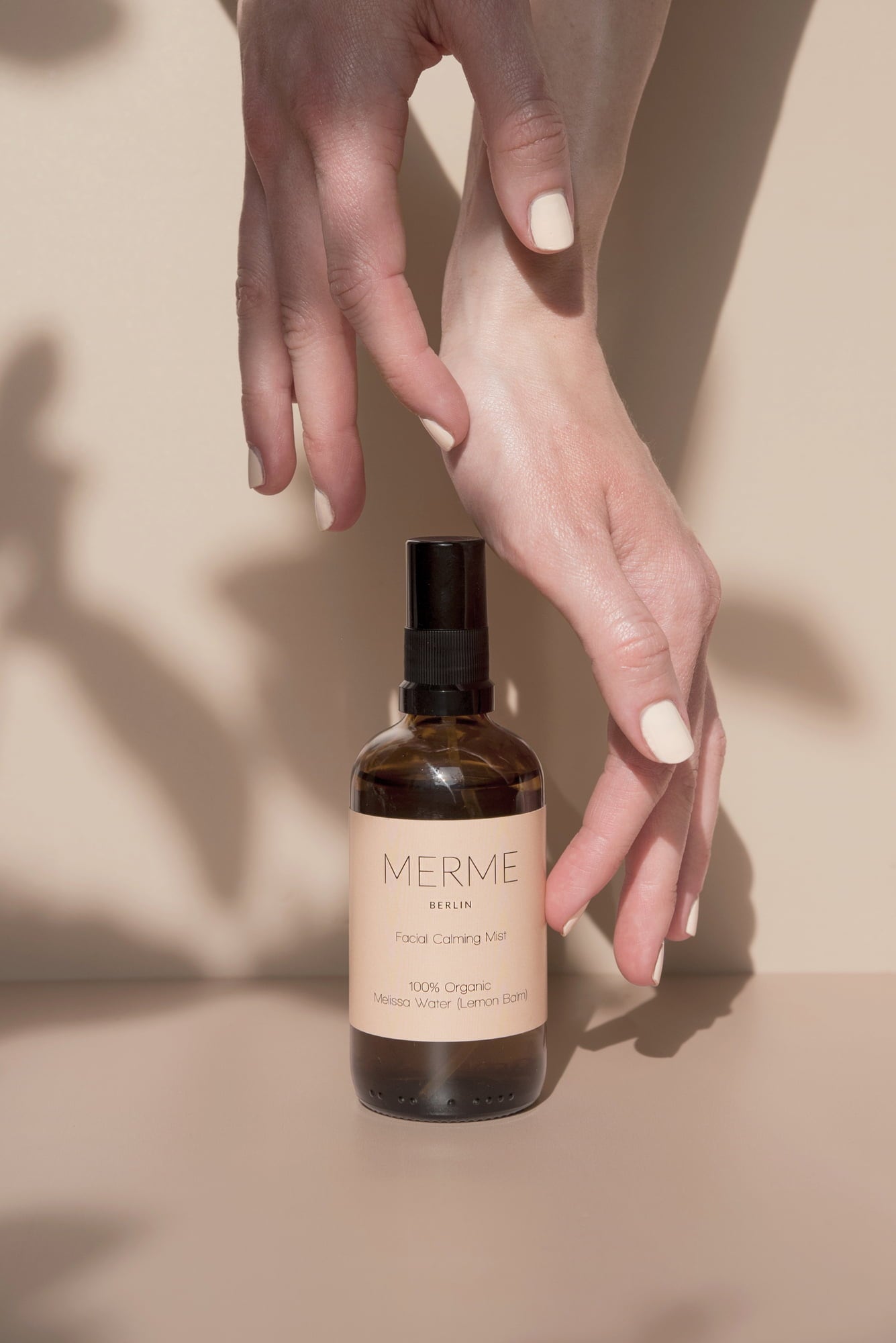 Facial Calming Mist – Melissa Water från MERME lugnar känslig och irriterad hud och lämnar huden mjuk och behaglig.