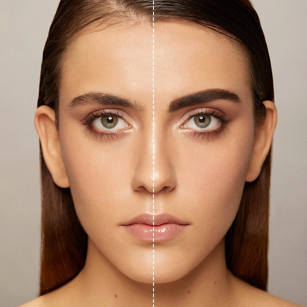 Rita tunna linjer längs brynen och fyll i där det behövs. Forma med den medföljande borsten för ett mjukt, naturligt resultat.
