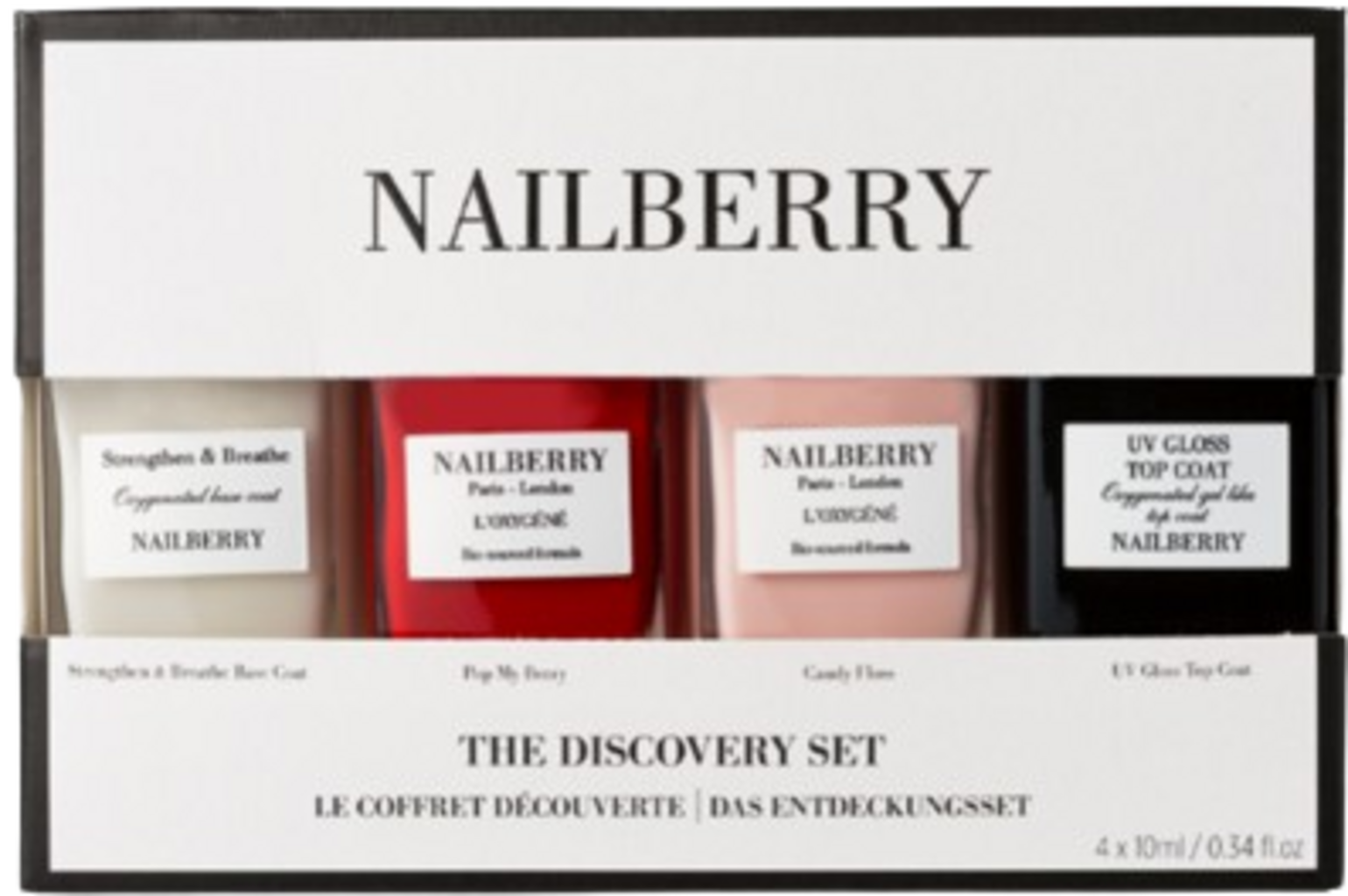 The Discovery Set innehåller två av de mest populära nagellacken samt en Base Coat och en Top Coat från Nailberry. De eftertraktade nyanserna är uppskattade för sina mångsidiga, smickrande och långvariga färgtoner samt för att de passar alla åldrar och hudtoner. I kombination med underlack och överlack får dina naglar dessutom en stärkande vård.