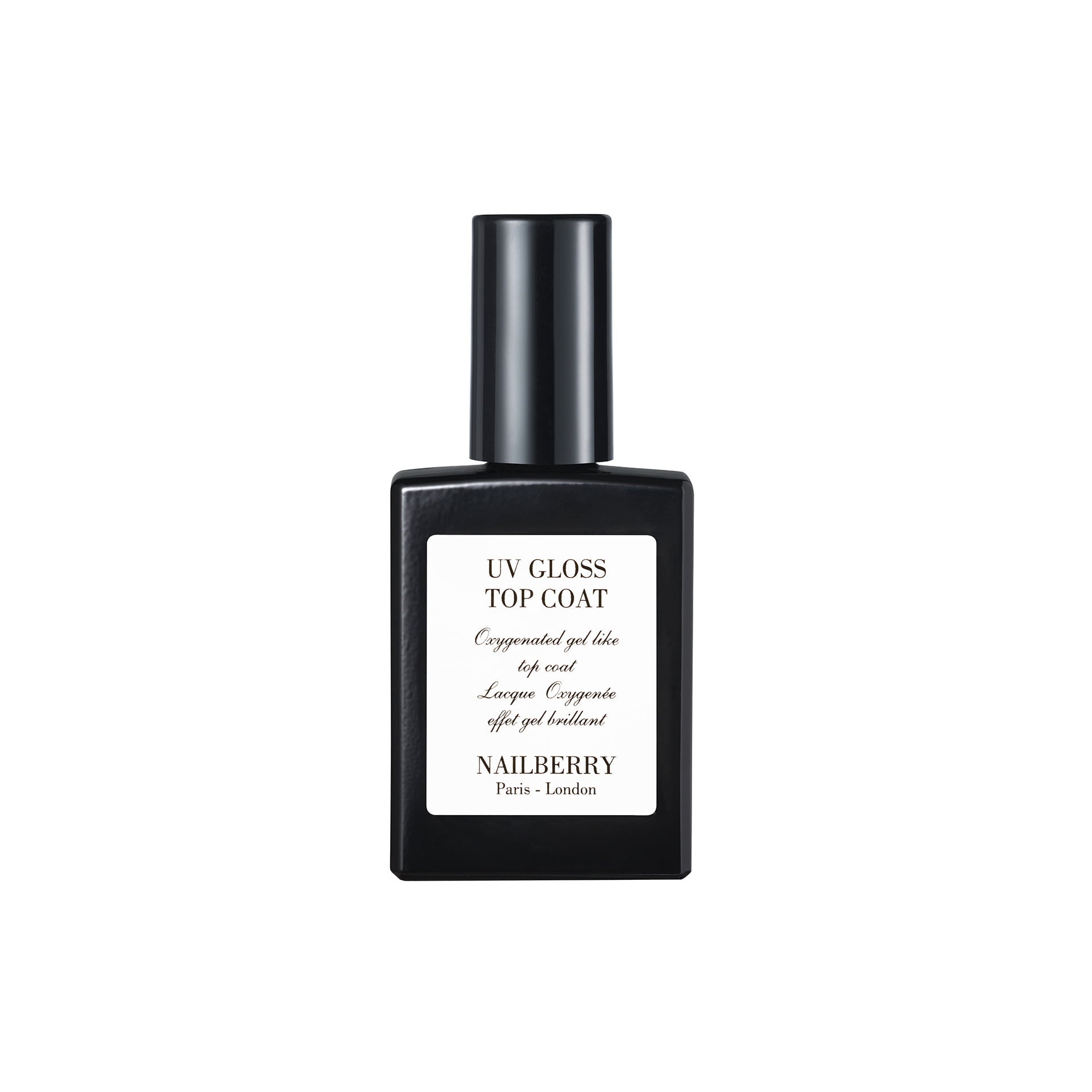 UV Gel Top Coat från Nailberry är en andningsbar och fuktgenomsläpplig överlack som skyddar nagellacket från att flagna eller blekna i förtid. Den högkvalitativa formulan är utvecklad för att härdas i vanligt dagsljus – helt utan behov av UV- eller LED-lampa – och ger en glansig finish. Lacket torkar snabbt och tas enkelt bort med acetonfri Clean Nail Color Remover.