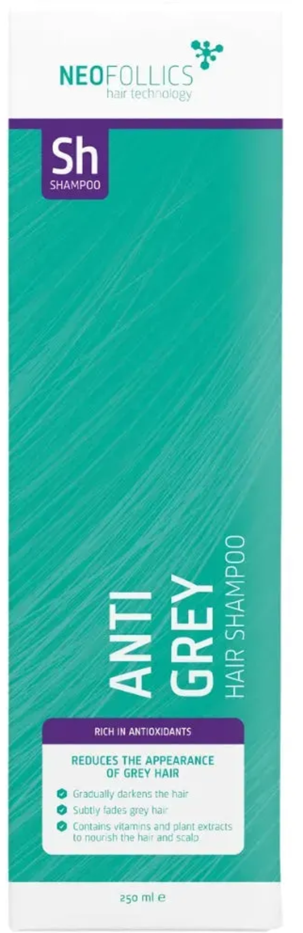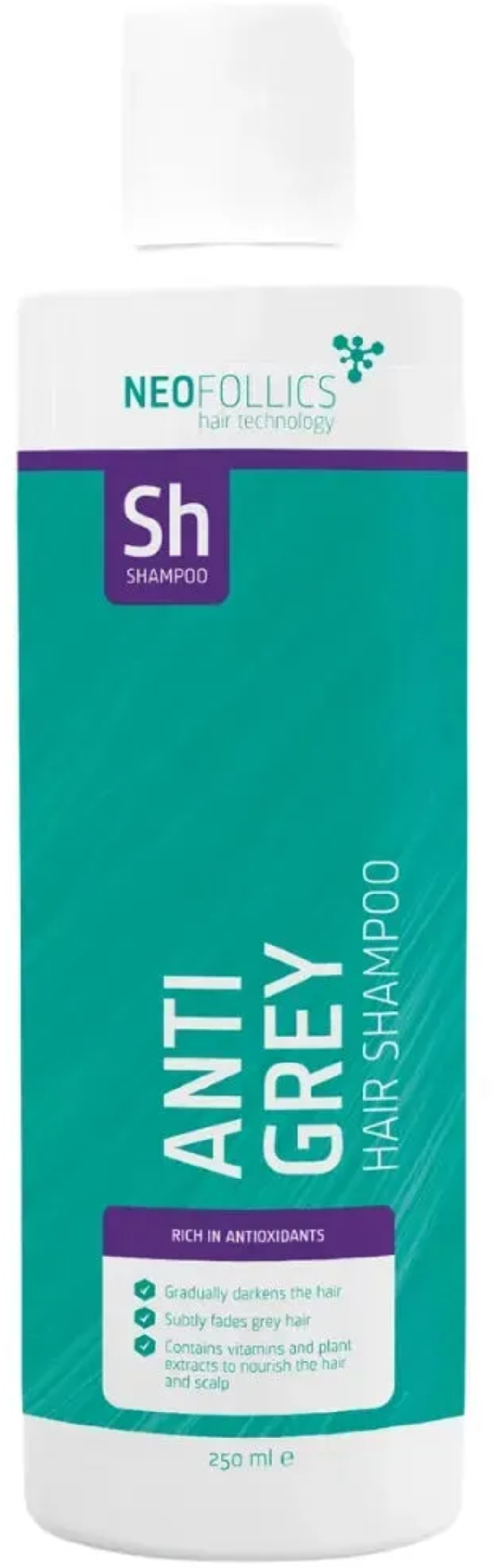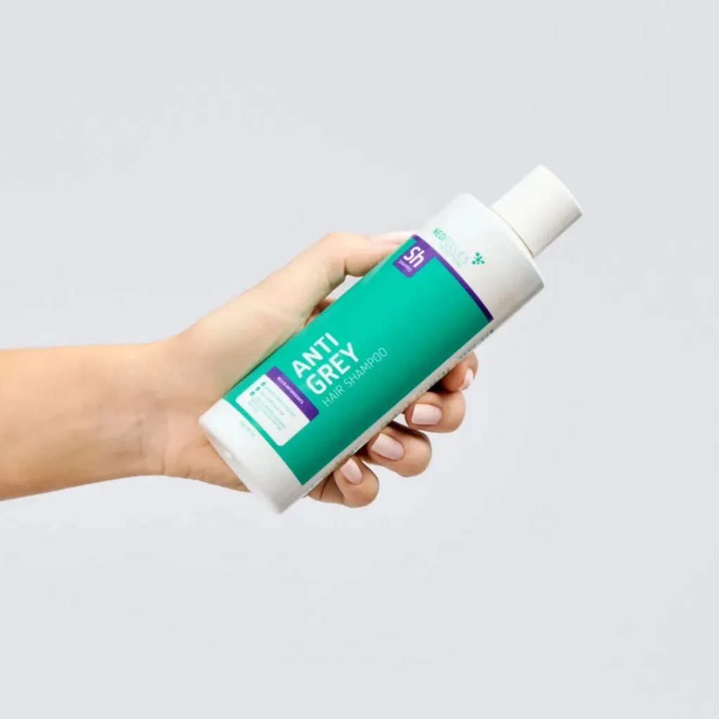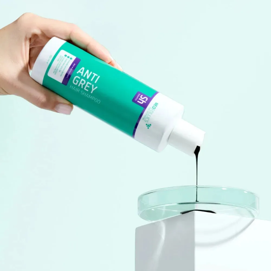 Anti-Grey Hair Shampoo från Neofollics återställer successivt din naturliga hårfärg. Med en innovativ blandning av milda färgpigment, antioxidanter och vårdande ämnen minskar synligheten av gråa hårstrån redan efter några tvättar. De skonsamma pigmenten fäster vid håret och förstärker din naturliga ton, medan vitamin E och extrakt från honungsmelon skyddar mot oxidativ stress. Schampot vårdar också hårbotten, motverkar mjäll och stimulerar hårväxten tack vare koffein.