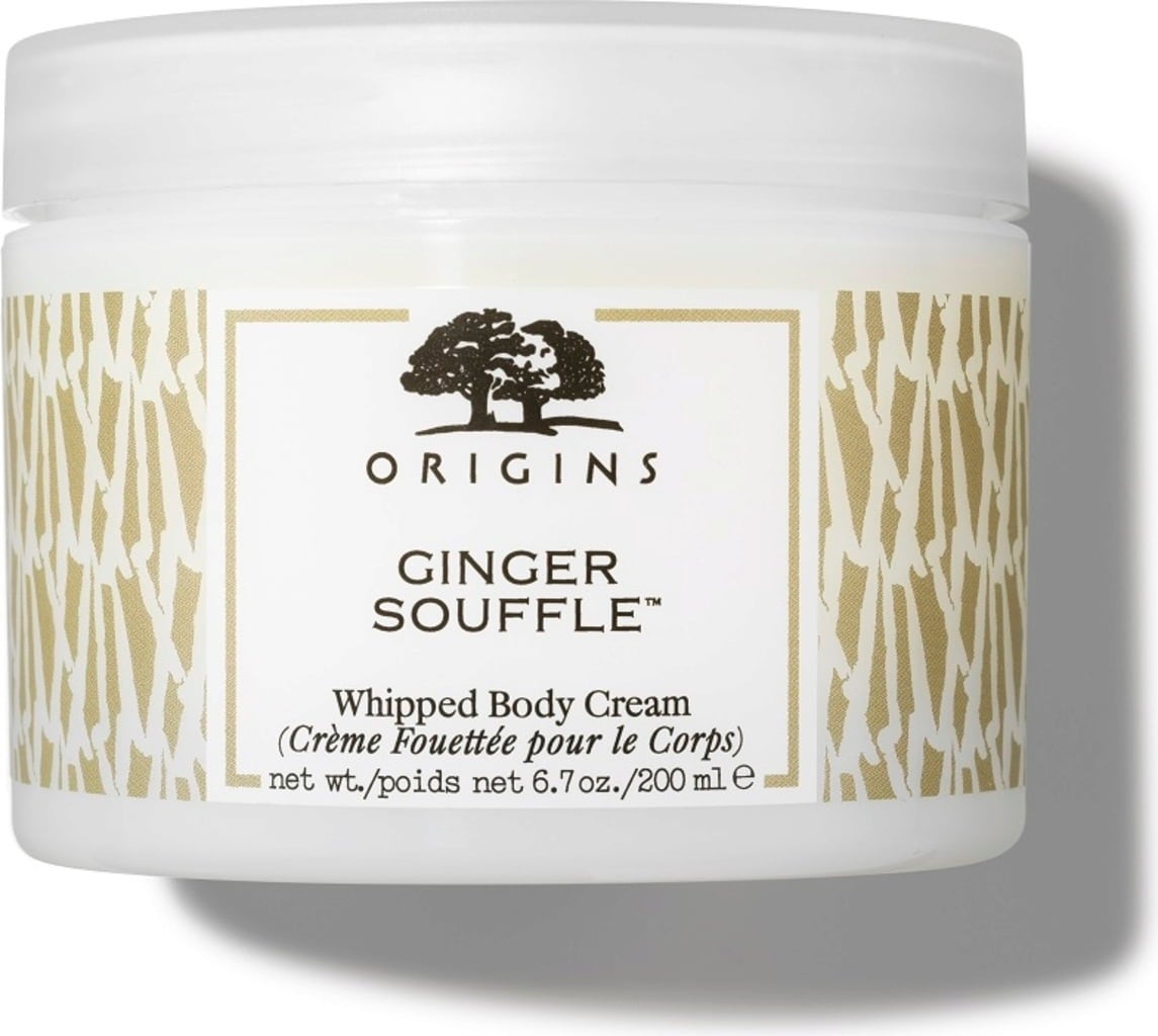 Ginger Souffle™ Whipped Body Cream från Origins vårdar huden intensivt och lämnar den mjuk och smidig. Verksamma ingredienser som ingefära hjälper till att lugna huden, medan en närande blandning av oljor – oliv, druvkärna, aprikoskärna och risskal – ger glåmig hud nytt liv och lyster. Den fräscha doften av citron, lime och bergamott ger en uppiggande upplevelse för både hud och sinne.
