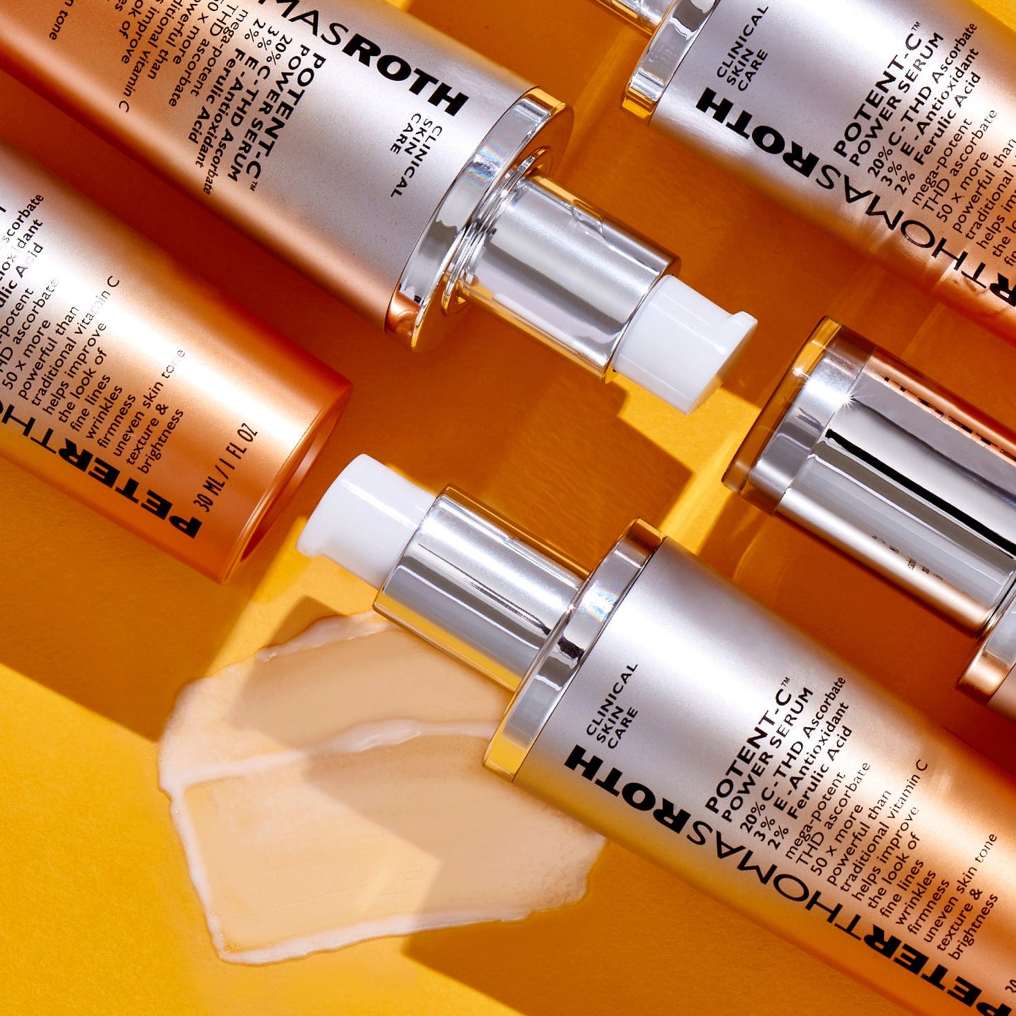 Huvudingrediensen THD Askorbat är en ultrastabil form av C-vitamin - 50 gånger mer potent än vanlig askorbinsyra. Den kraftfulla formulan kompletteras med 3 % vitamin E och 2 % ferulasyra för att effektivt skydda huden mot för tidigt åldrande.