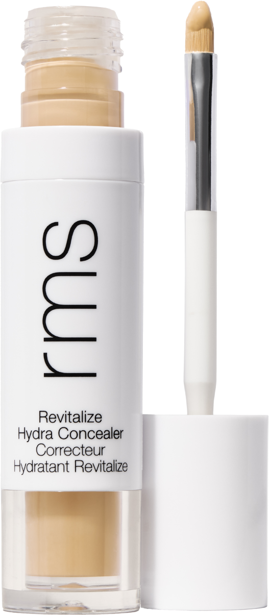 Revitalize Hydra Concealer från RMS Beauty är en högeffektiv korrigerande flytande concealer med medium täckning och en silkeslen, naturlig finish. Den är kladdfri, ger intensiv näring till huden och erbjuder även fördelarna med en ögonkräm. Den ger nytt liv åt det känsliga ögonområdet, förfinar hudens struktur och döljer samtidigt mörka ringar, blemmor och irritationer med en jämn och långvarig täckning. Den fjäderlätta, krämiga konsistensen känns viktlös och smälter enkelt in utan att lägga sig i fina linjer eller porer. Den innovativa formulan har visat sig återfukta i 8 timmar, är allergivänlig och lämplig för känslig hud. Concealern har en tunn, integrerad borste för exakt applicering och är fylld med kraftfulla, rena ingredienser, inklusive vitaliserande Eyebright, innovativa Revital-Eyes Complex, hudfästande Tightenyl™ (ett naturligt retinolalternativ), fuktgivande botanisk Squalane och RMS Adaptogenic Herbal Blend - för en ljusare, jämnare och mer lysterfull hy som aldrig är torr eller tråkig.
