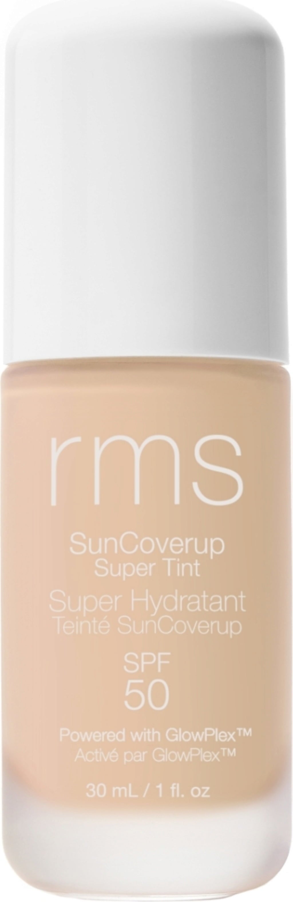 SunCoverup Super Tint SPF 50 från RMS Beauty är en silikonfri, tonad fuktkräm med hög, mineralsk solskyddsfaktor. Den ger dig en strålande, jämn hy samtidigt som den skyddar dig från solljus och blått ljus. Den sofistikerade formuleringen med ett speciellt GlowPlex™-komplex jämnar ut, stramar upp och ljusar upp huden, medan fuktrik växtbaserad squalane ger återfuktning. Bisabolol och RMS egen adaptogena örtblandning ger en balanserande effekt med sina lugnande egenskaper. Den lätta, andningsbara formulan känns också helt viktlös på huden och ger dig en naturligt strålande hy.