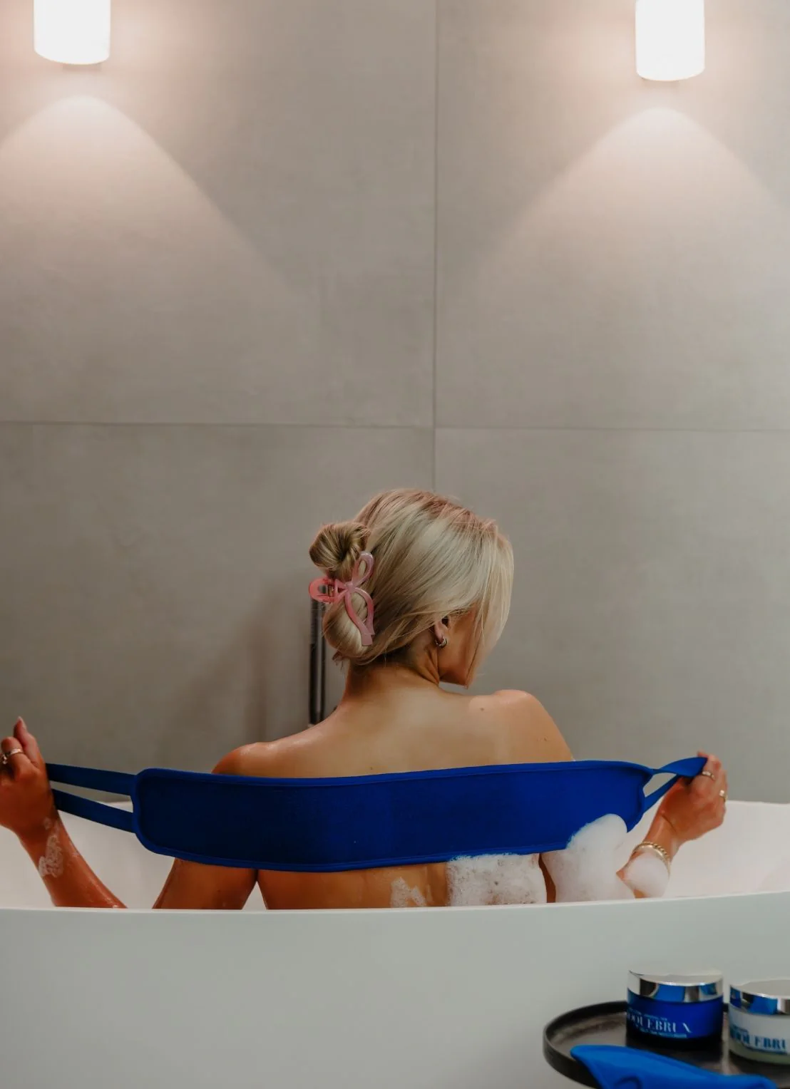 Back Exfoliator från ROQUEBRUN är det perfekta verktyget för att rengöra ryggen skonsamt och avlägsna döda hudceller. Resultatet är en mjuk och jämn hud – den perfekta basen inför applicering av brun-utan-sol. Produkten tränger in bättre och ger ett jämnare resultat som dessutom håller längre. Med det praktiska peelingbandet når du hela ryggen utan hjälp och utan att behöva vrida dig obekvämt. En jämn och vacker bränna över hela kroppen har aldrig varit enklare.