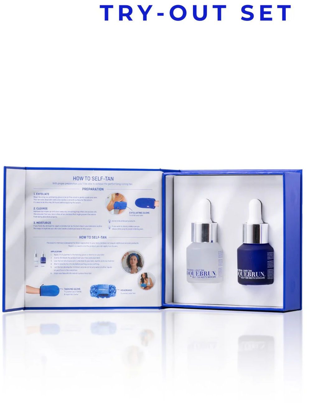 Mini Set från ROQUEBRUN innehåller två brun-utan-sol-serum som ger dig en naturligt solkysst ton och återfuktar huden på djupet. Använd dem direkt på rengjord hud eller blanda med dina vanliga hudvårdsprodukter. Berikade med växtbaserat retinol, hyaluronsyra, kollagen och aloe vera – ingredienser som jämnar ut, stärker och lugnar huden. Serumet passar alla hudtyper, kan användas både morgon och kväll, och ger en naturlig bränna utan orange ton. De lätta, icke-fetande texturerna absorberas snabbt, är doftfria och ger synliga resultat inom 4–8 timmar, som håller i 3–4 dagar. Perfekt för resan – eller som ett startkit i din brun-utan-sol-rutin.