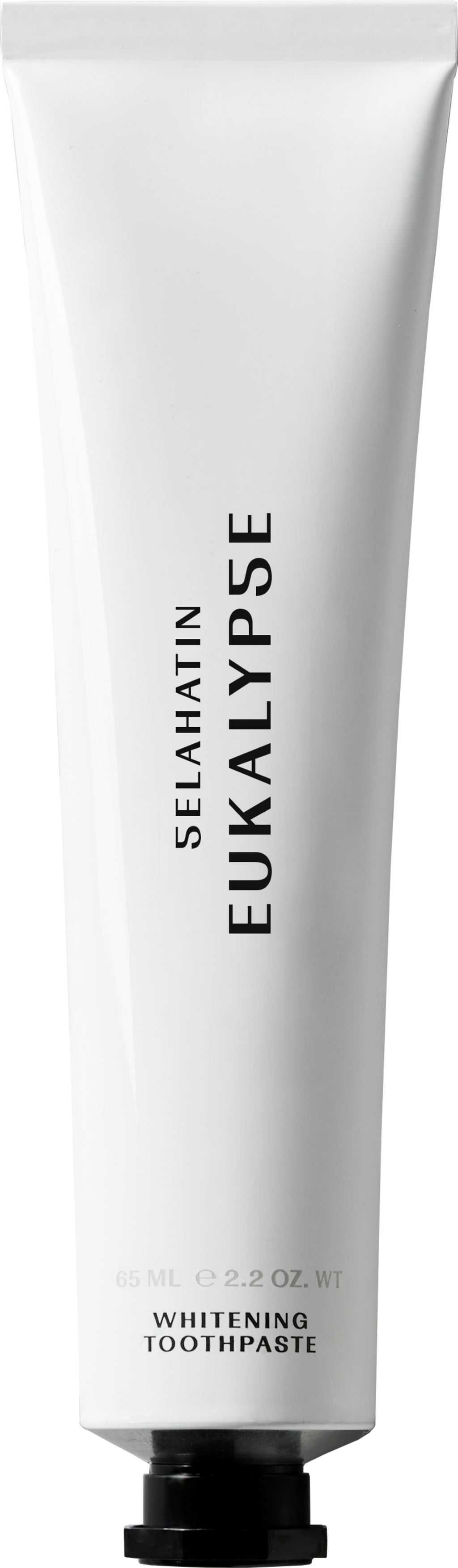 Whitening Toothpaste Eukalypse från Selahatin erbjuder en effektiv djuprengöring av tänderna och ger samtidigt en lätt exfolierande effekt. Antioxidativt extrakt från edelweiss hjälper till att balansera munnens mikroflora, medan den naturliga aminosyran betain återfuktar och vårdar. Tandkrämen polerar tänderna och reflekterar ljus, vilket resulterar i ett synligt vitare leende. Den passar även för känsliga tänder och ger förebyggande vård med hjälp av mineraliserande hydroxylapatit.