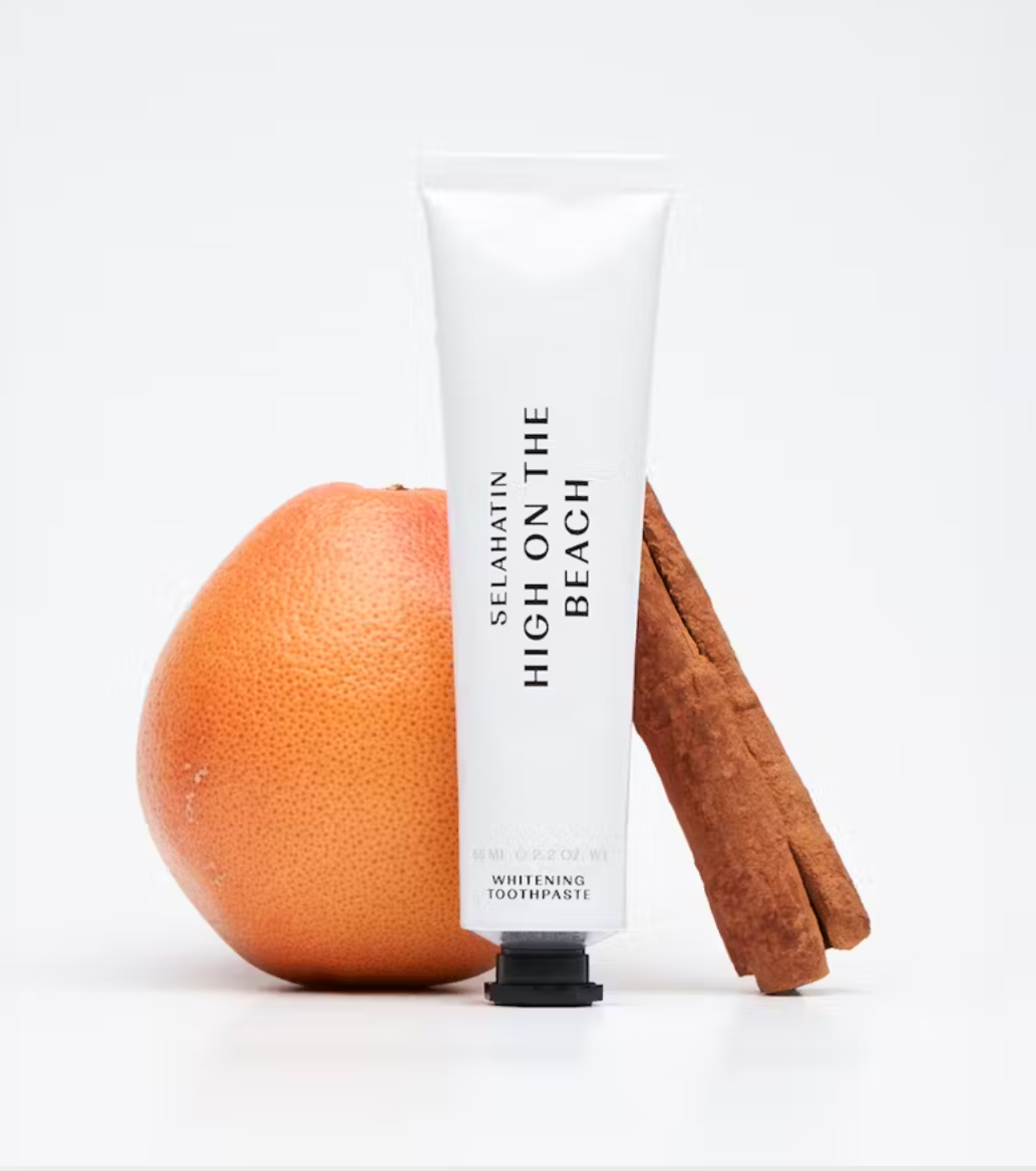 Whitening Toothpaste High On The Beach från Selahatin erbjuder en effektiv djuprengöring av tänderna och ger samtidigt en lätt exfolierande effekt. Antioxidativt extrakt från edelweiss hjälper till att balansera munnens mikroflora, medan den naturliga aminosyran betain återfuktar och vårdar. Tandkrämen reflekterar ljus och polerar tänderna för en synligt ljusare och jämnare yta. Den passar även känsliga tänder och ger ett skyddande stöd tack vare mineraliserande hydroxylapatit.