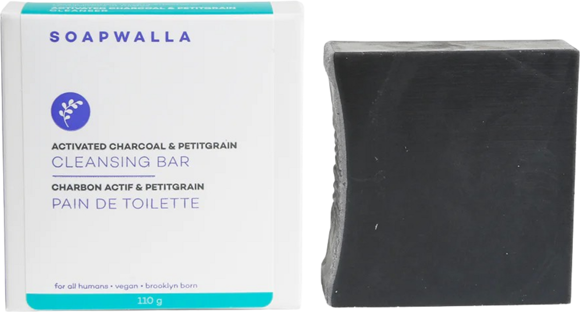 Soapwalla Activated Charcoal & Petitgrain Soap Bar, 110 g