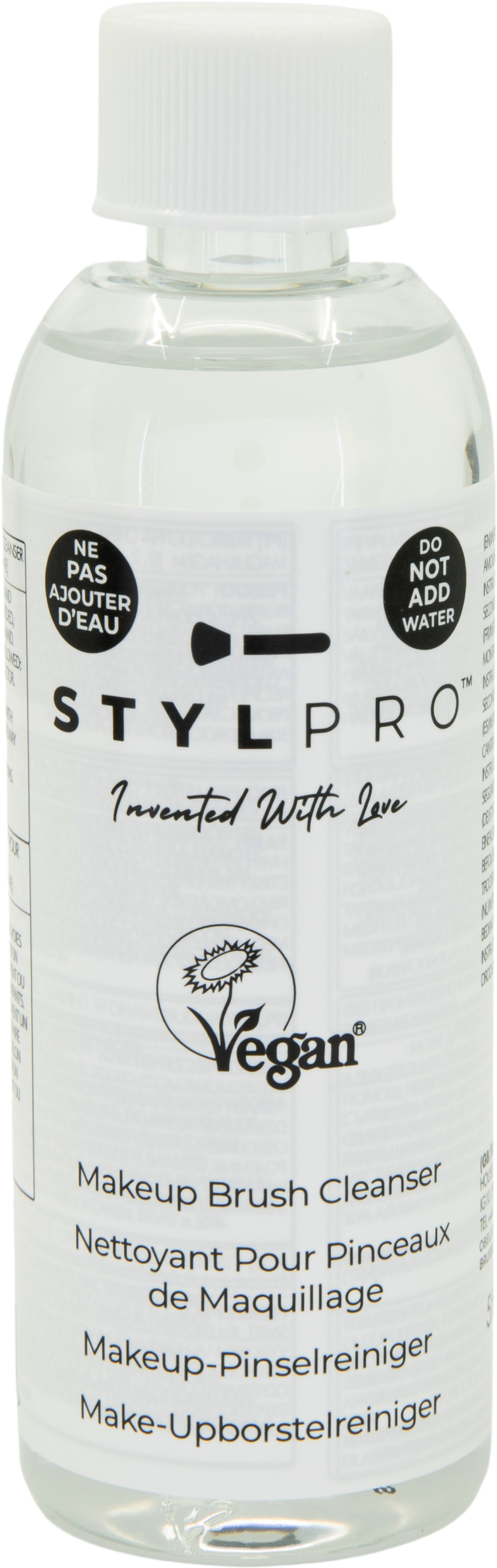StylPros Makeup Brush Cleanser tar bort alla spår av makeup i ett steg. Genom att snurra din borste i vätskan tar du genom centrifugalkraften bort de oljigaste foundations, och skadliga bakterier som lever på borsthuvudena. Rengöringen är berikad med närande druvkärnor och arganolja. Så du håller inte bara dina borstar hygieniskt rena, utan borsten förblir också himlamjuk och lena.