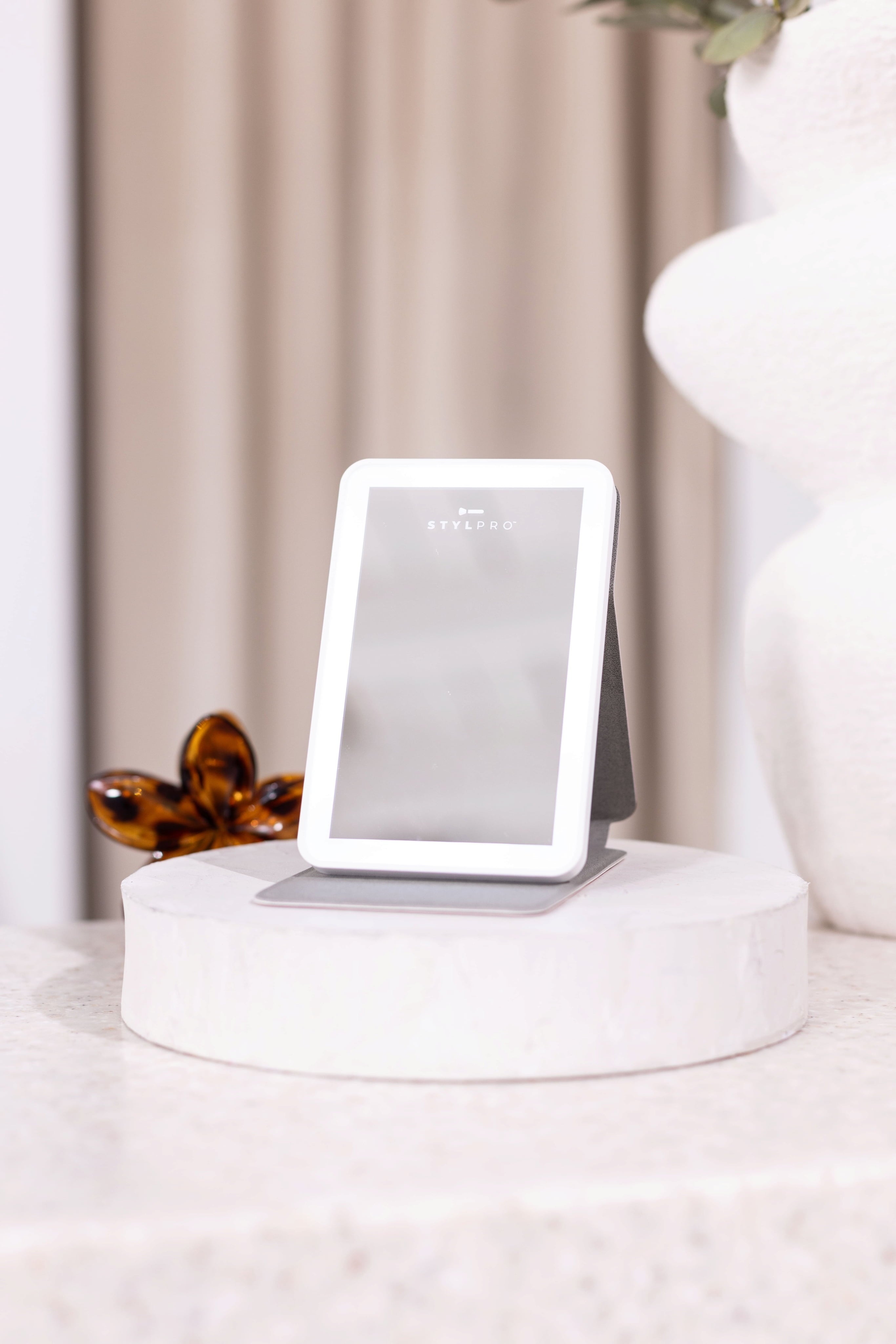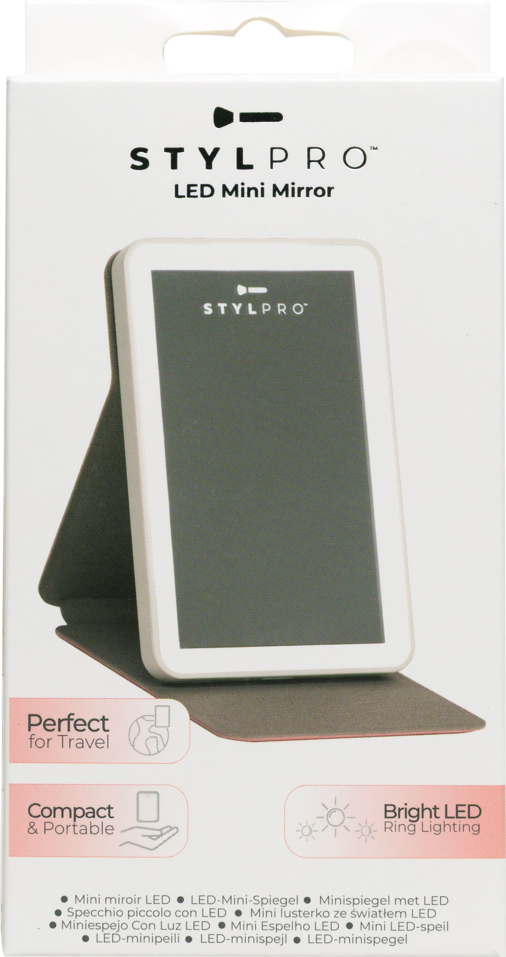 Uppnå en felfri look, var du än är! Med STYLPRO LED Mini Mirror. Den kompakta, smidiga spegeln är perfekt för att snabbt fräscha upp sminket eller styla håret när du är på språng. Tack vare den inbyggda LED-belysningen har du alltid jämnt och klart ljus, oavsett om du är på café, kontor eller resa. Den smala, moderna designen och den lätta vikten gör den till ett måste i varje handväska. Med STYLPRO LED Mini Mirror visar du dig alltid från din bästa sida.