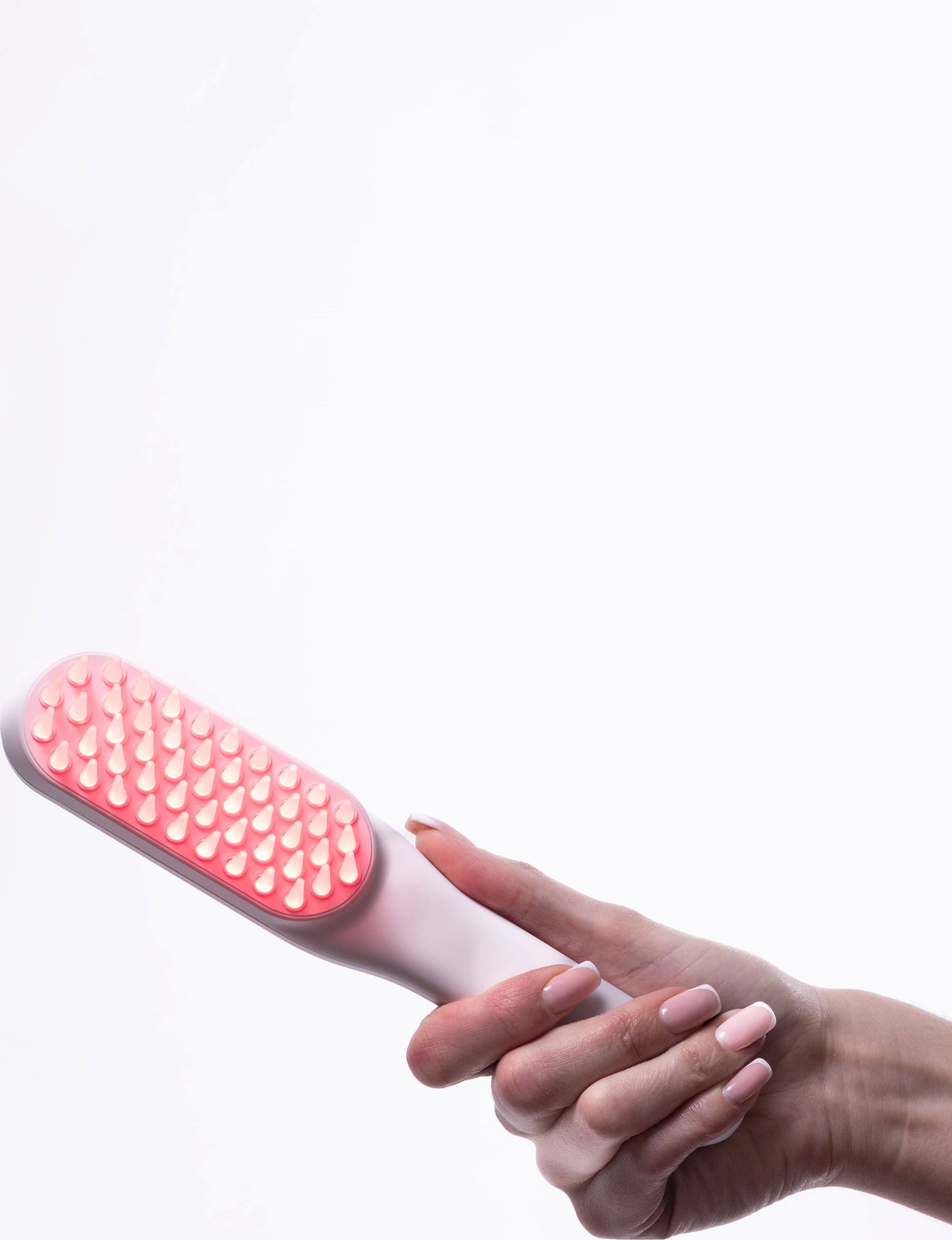 Upptäck StylPro Root Renew Red Light Hairbrush: ditt nya verktyg för starkt, glänsande hår. Den använder 655 nm rött ljus för att sända mjuka impulser direkt till hårbotten, medan flexibla silikonpiggar och milda vibrationer följer varje kontur för en avkopplande massage. Kombinationen av ljusbehandling och massage gör borsten till ett perfekt inslag i din dagliga rutin, oavsett om du använder den som en energigivande start på morgonen eller som en avkopplande stund på kvällen. Den ergonomiska designen ligger bekvämt i handen och hjälper till att väcka dina hårrötter till liv. För hår som glänser från grunden.