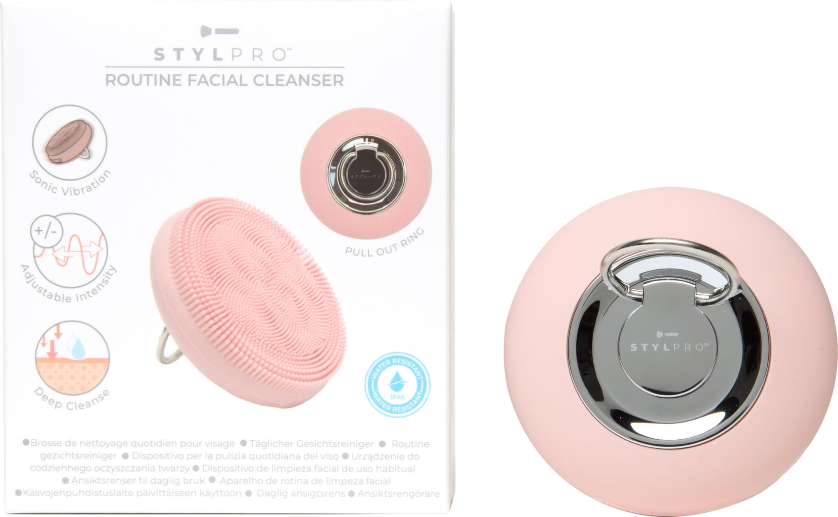 Routine Facial Cleanser från StylPro tar din hudvård till en ny nivå. Det smidiga verktyget använder skonsamma men effektiva ljudvibrationer för att förbättra rengöringsprocessen och avlägsna smink och orenheter på djupet. Vibrationerna hjälper inte bara till att lyfta sminkrester ur porerna, utan stimulerar också blodcirkulationen för en friskare och mer strålande hud. Med flera vibrationslägen kan du anpassa intensiteten efter din huds behov. De mjuka silikonborsten ger en behaglig rengöring utan att irritera huden. Enheten är vattentät och har ett uppladdningsbart batteri för långvarig, miljövänlig användning.