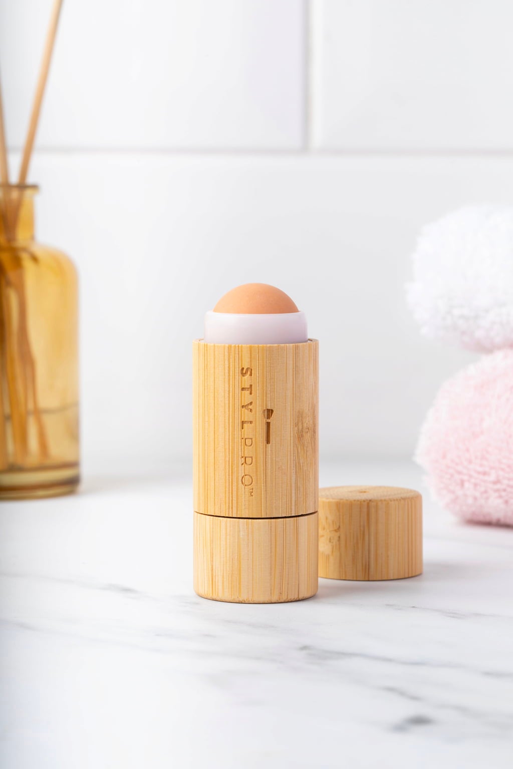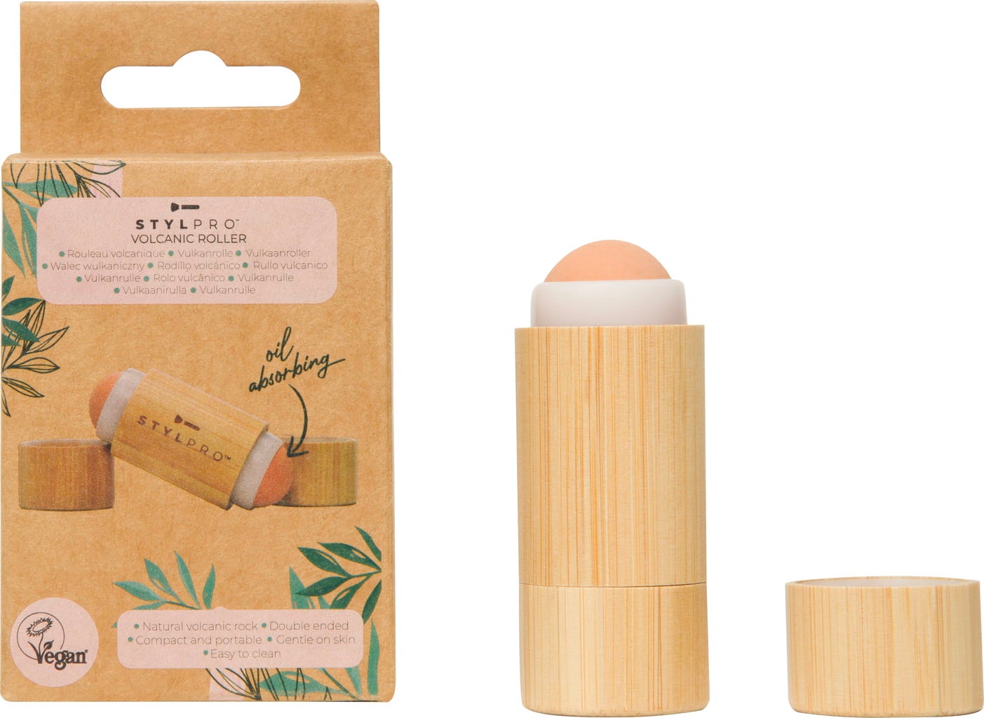Volcanic Roller från StylPro är ett oljeabsorberande verktyg som effektivt avlägsnar överskottssebum från ansiktet. Bambusticket är utrustat med vulkaniska mineralrullar i båda ändar, vilket ger en naturlig absorption och en mattande effekt. Denna skonsamma men effektiva lösning är perfekt för dig som vill ha ett hållbart, återanvändbart och lättanvänt verktyg för glansfri hud, var du än är.