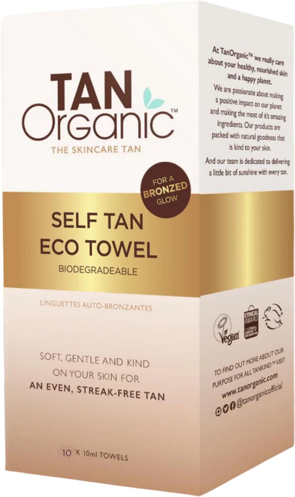 Med dessa brun-utan-sol-handdukar kan du uppnå en strålande, solkysst hy och bli belönad med hudvård. De biologiskt nedbrytbara våtservetterna är indränkta i en certifierad ekologisk torroljeformula med aloe vera och gurkörtsolja, som återfuktar huden och ger en vacker bronsglöd som varar i 7 till 10 dagar. Eco Towels är lämpliga för användning i ansiktet och på kroppen och innehåller en osynlig och snabbtorkande formula som ger en djup solbränna. Varje 10 ml våtservett räcker för att täcka halva kroppen rikligt.