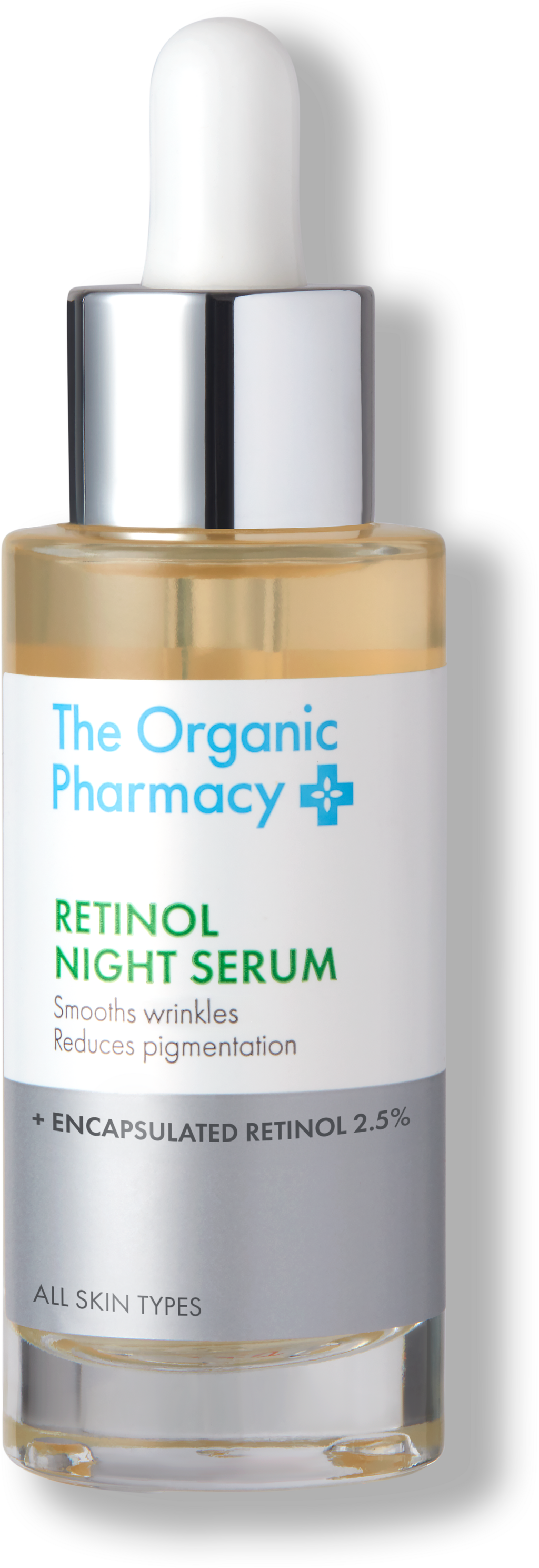 Retinol Night Serum från The Organic Pharmacy reducerar synligt fina linjer, ger en jämnare hudton och förbättrar hudens fasthet. Nattserumet stimulerar kollagenproduktionen och stödjer hudens elasticitet.