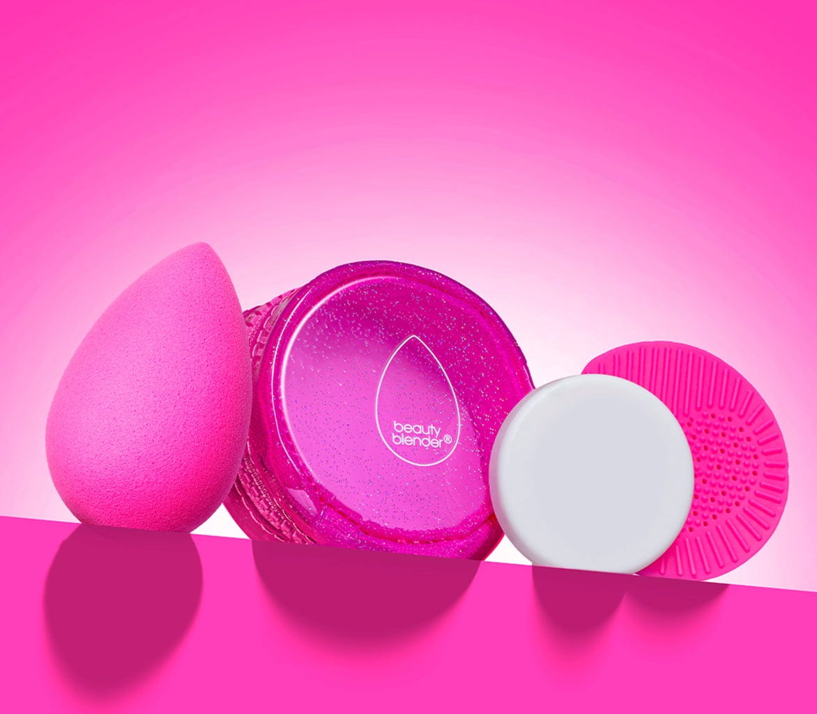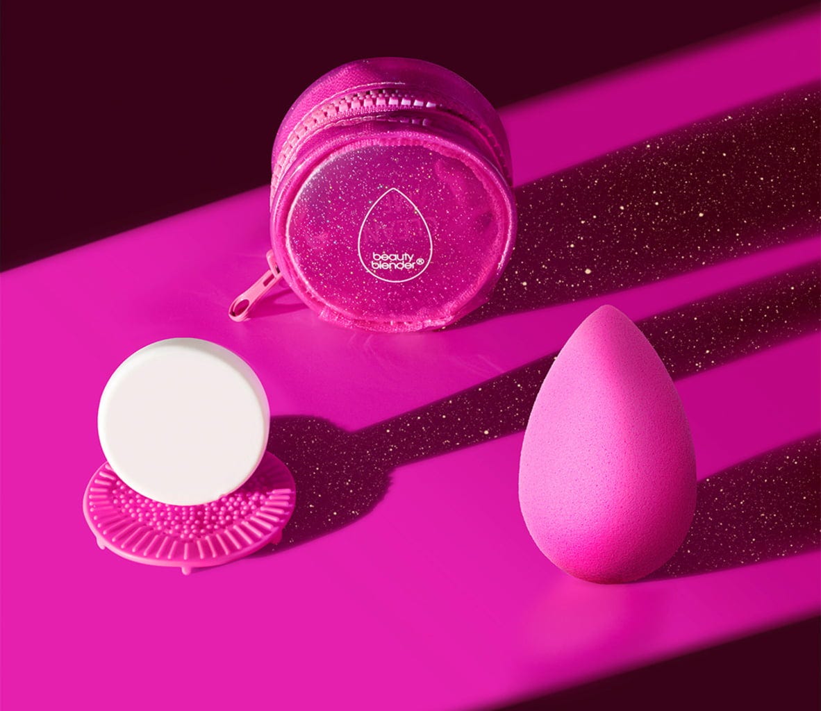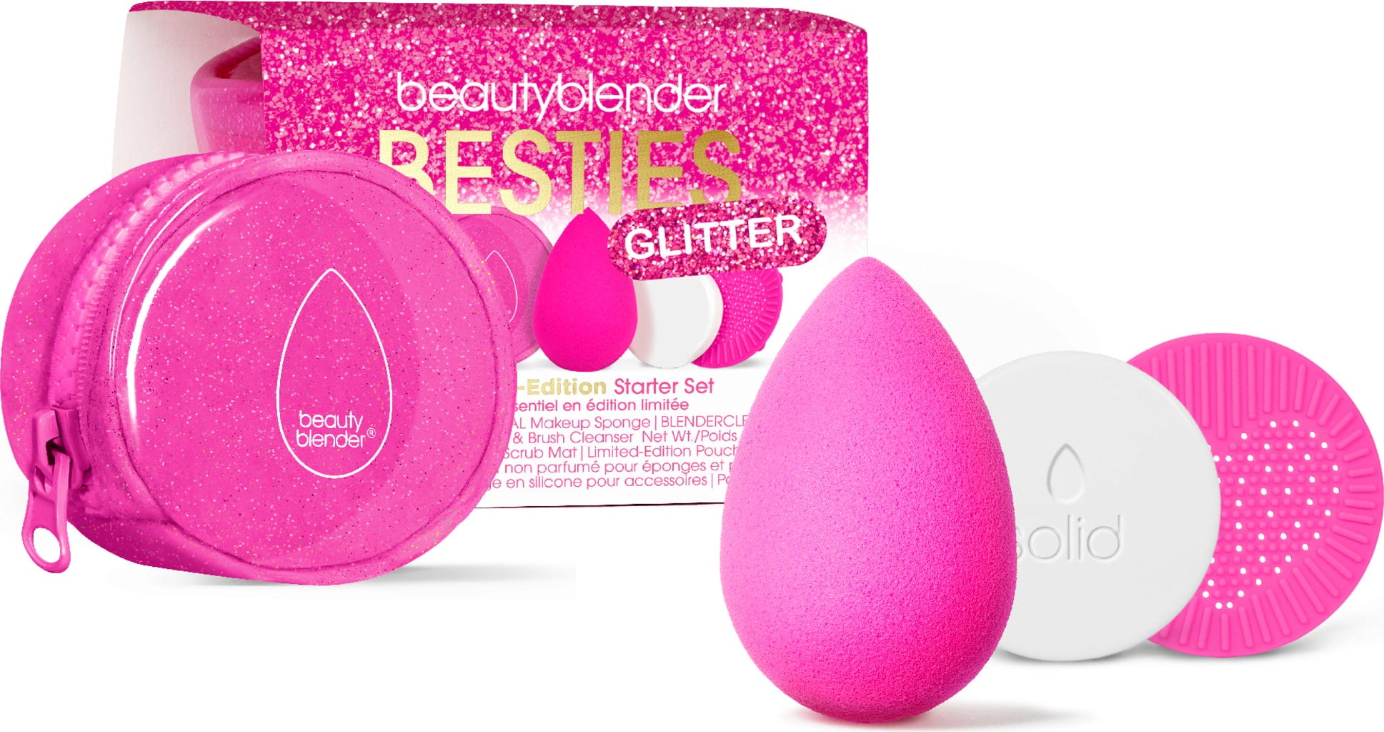 Glitter BESTIES innehåller allt du behöver för en perfekt hudton. Med beautyblendern skapar du en naturlig och jämn finish, samtidigt som du håller din svamp ren och hygienisk med blendercleanser. Setet innehåller även en högkvalitativ silikonmatta som hjälper till att ta bort envisa fläckar samt en söt, glittrig necessär för förvaring av dina produkter.