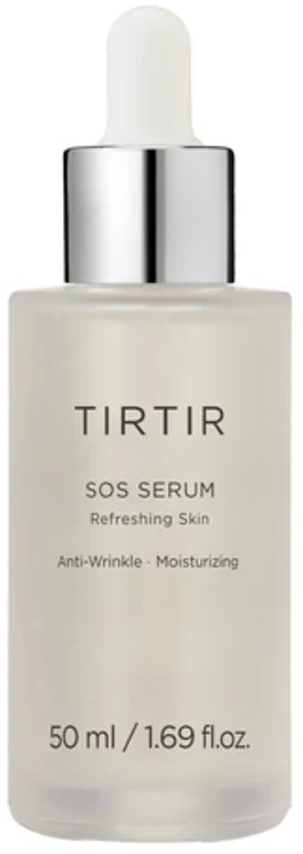 SOS Serum från TIRTIR är ett intensivt återfuktande anti-ageing ansiktsserum för alla hudtyper, men särskilt för torr hud. Det är bland annat berikat med polyglutaminsyra, som kan lagra betydligt mer fukt i huden än hyaluronsyra. Serumet är också berikat med närande ämnen som trollhassel och kamomill. Serumet kan hjälpa till att förfina porerna och främja kollagenproduktionen i huden.