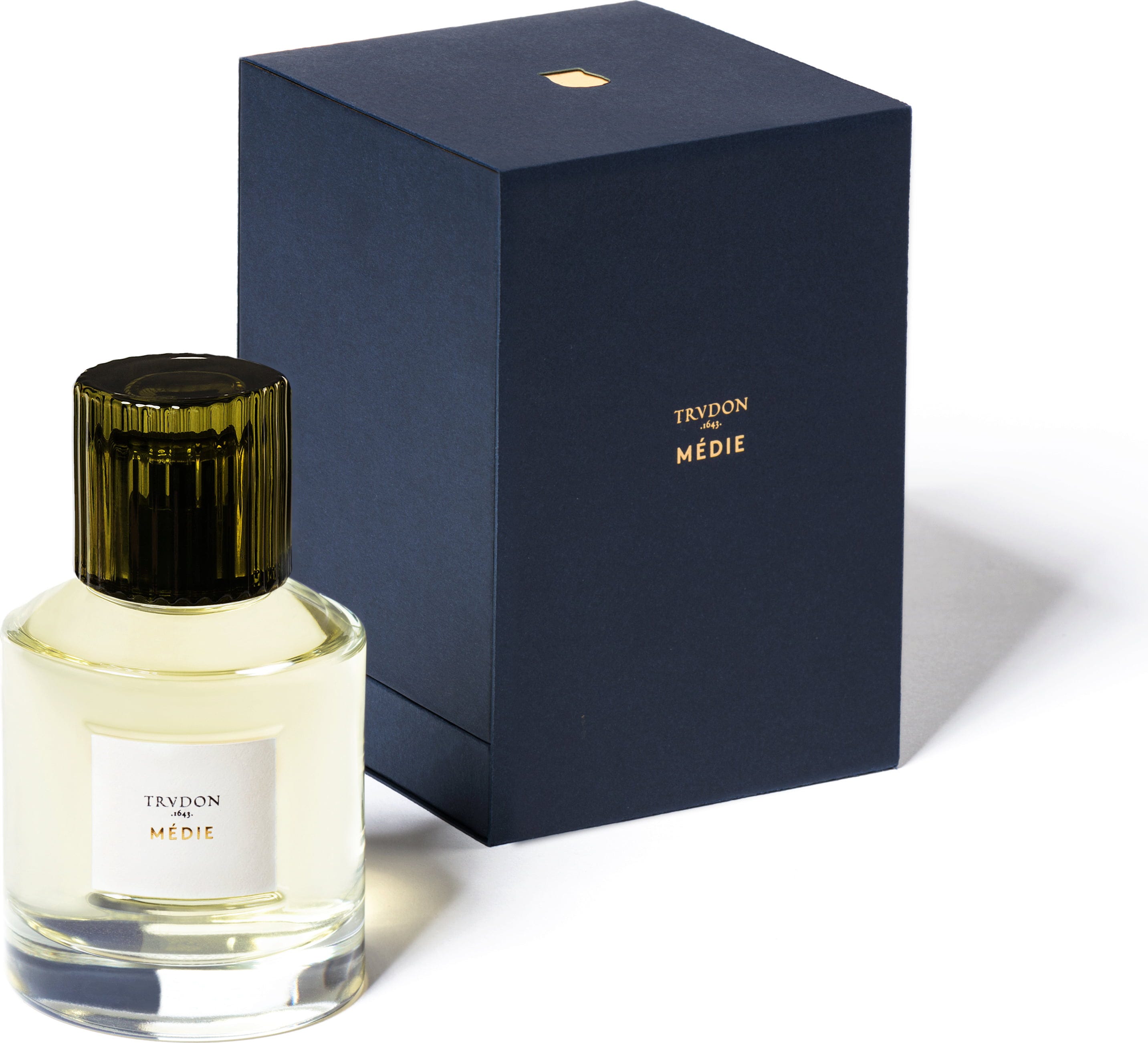 Eau de Parfum Médie från Trudon är en livfull doftresa med ett citrusfyllt hjärta. Den ger huden en uppfriskande energi och lämnar efter sig subtila spår av amber och läder – en doft som balanserar lätthet och djup med utsökt finess.