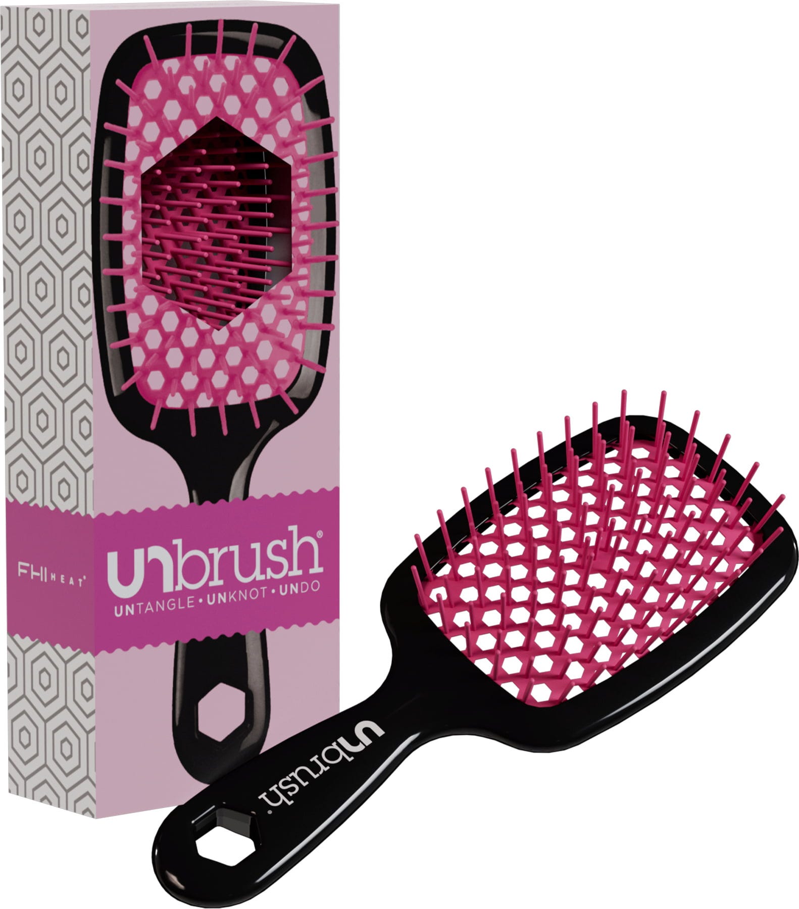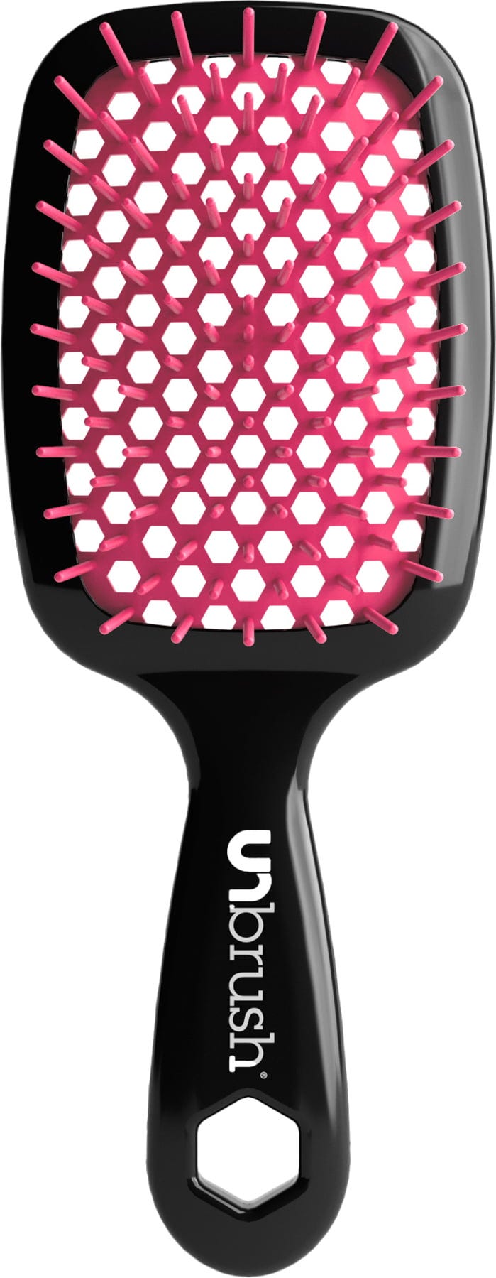 Säg hejdå till dåliga hårdagar och smärtsamt trassel! Detangling Hair Brush från UNbrush är det nya måste-ha-verktyget för ditt hår. Oavsett om du precis har duschat eller vill fräscha upp torrt hår glider denna borste lätt genom varje tova - utan tårar. Hemligheten ligger i en smart kombination av 105 Soft-Flex- och UltraFlex-borst i två olika längder som effektivt reder ut även det mest svårhanterliga håret och minskar risken för slitage och håravfall. Det lätta materialet och det ergonomiska handtaget gör att borsten ligger perfekt i handen och gör borstningen smidigare än någonsin. Den luftgenomsläppliga borstdesignen i kombination med värmetåliga borststrån gör dessutom att föntiden kan kortas med upp till 48 %, vilket snabbar upp din styling.